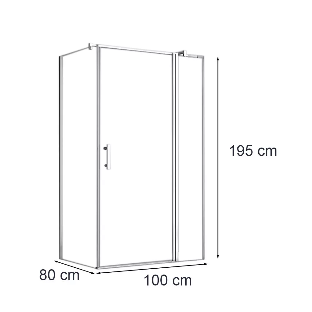 Asymetryczna kabina prysznicowa 80x100 cm z otwieranymi drzwiami (bez brodzika)