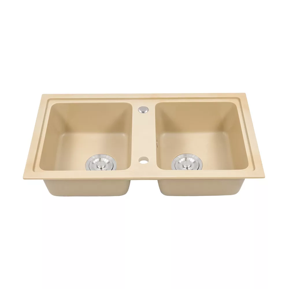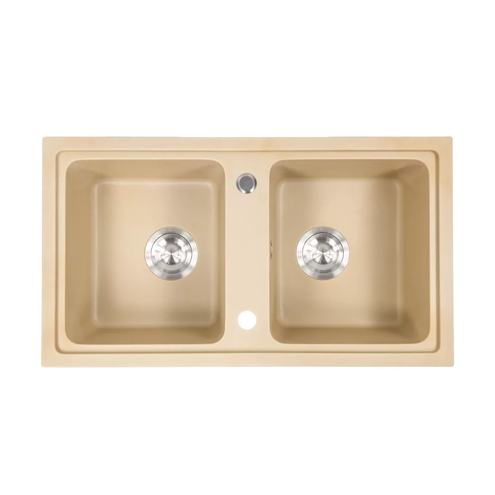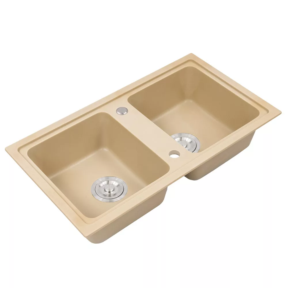 Kwadratowy zlewozmywak granitowy Tia Beige - dwie komory dla wygody i elegancji