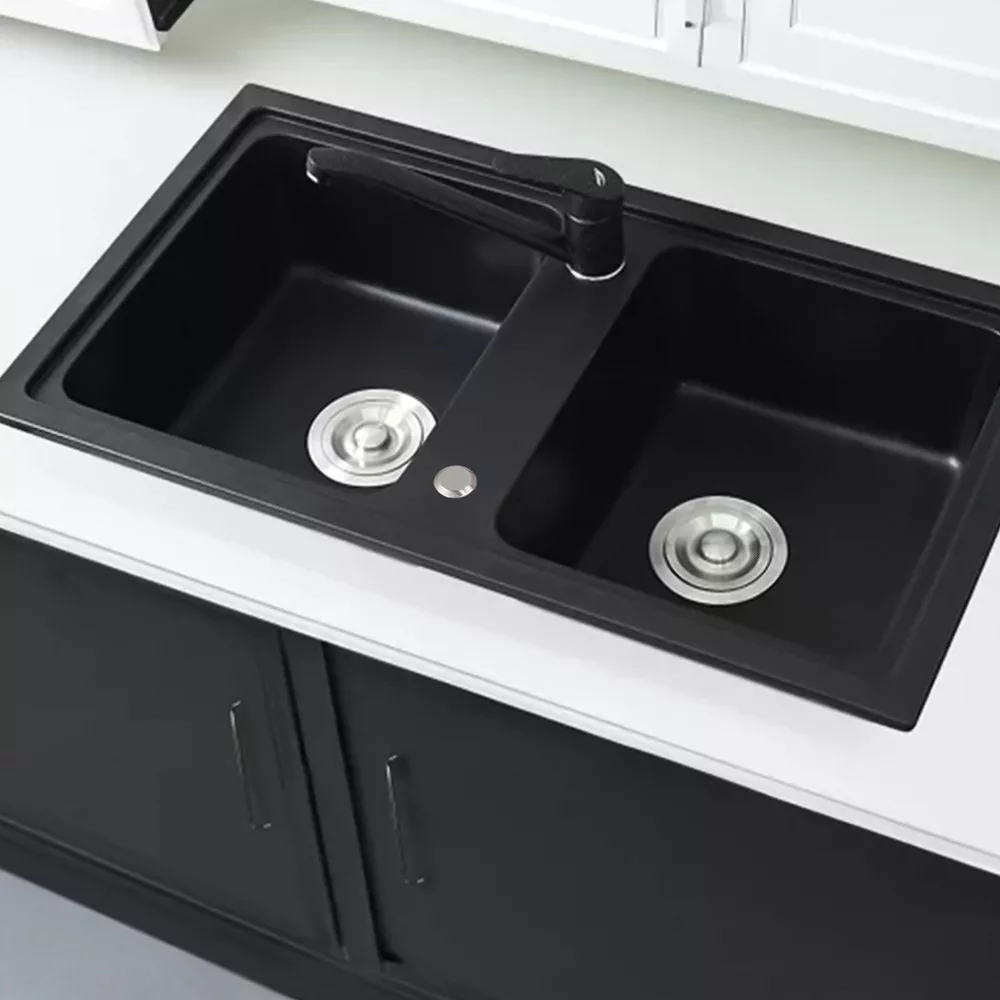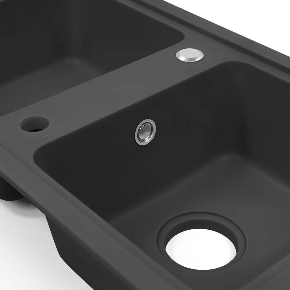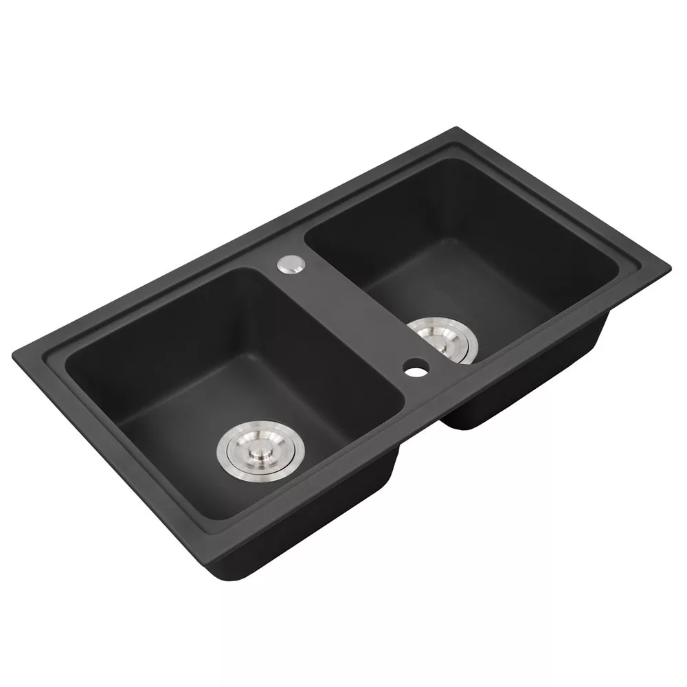 Czarny zlewozmywak granitowy Tia Square - dwie komory dla wygody i elegancji