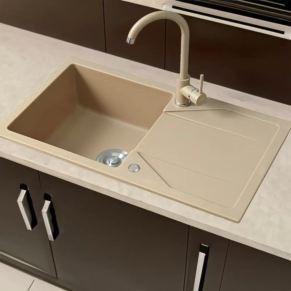 Zlewozmywak Beige Granite zawsze nadaje kuchni modny i ponadczasowy wygląd. Szeroki wybór kolorów pozwala na dopasowanie do wyposażenia kuchni i otoczenia, zarówno w stylu nowoczesnym, jak i klasycznym.