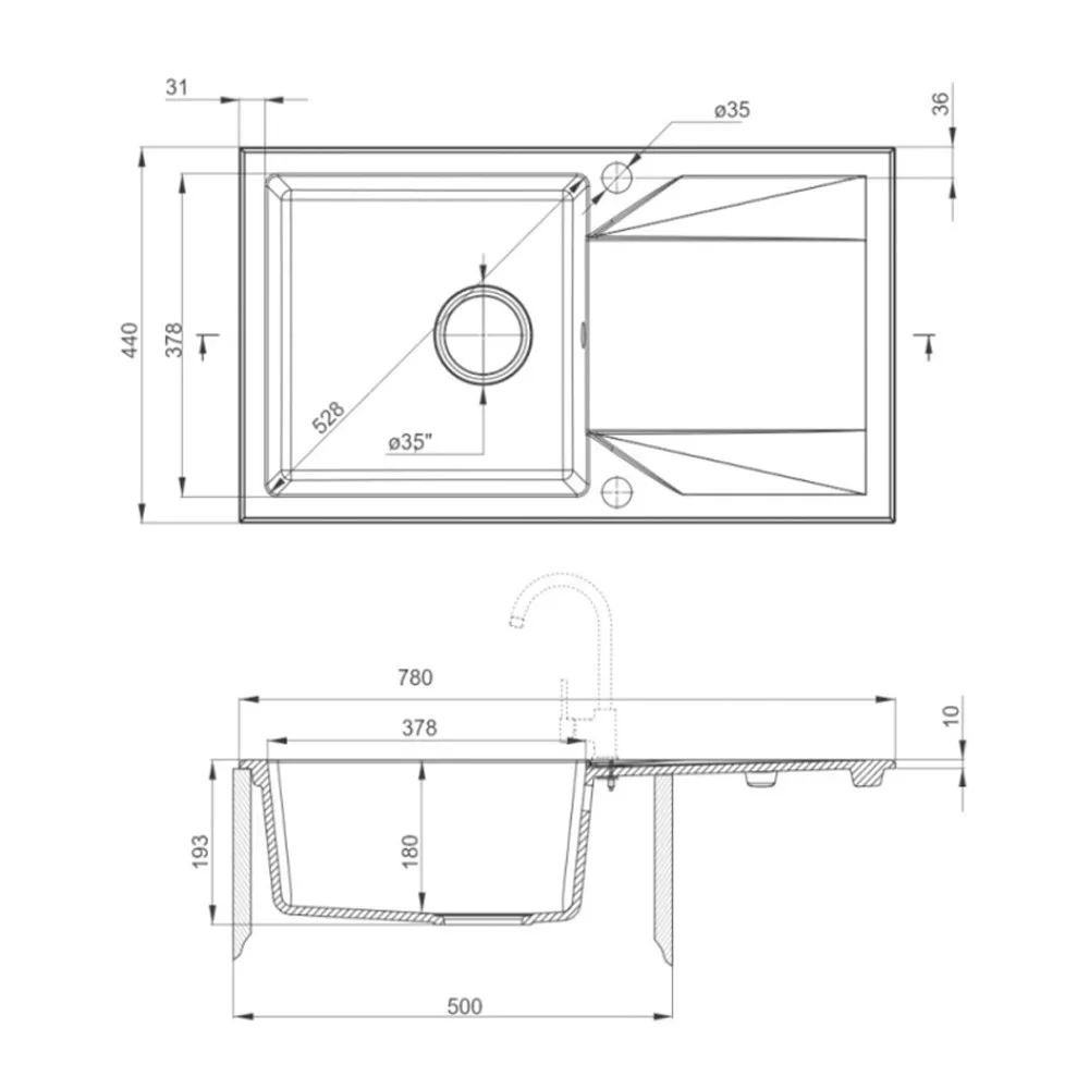 - Liczba komór zlewu: 1