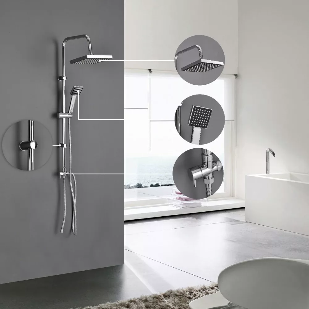 W przypadku systemu prysznicowego do zabudowy w ścianie bateria, rury i często również przełącznik funkcji znajdują się za ścianą, a na zewnątrz widoczne są tylko elementy sterujące i głowica prysznicowa. Zapewnia to bardziej przejrzysty wygląd, ale instalacja jest możliwa tylko podczas budowy lub remontu łazienki, po wcześniejszym przygotowaniu instalacji.