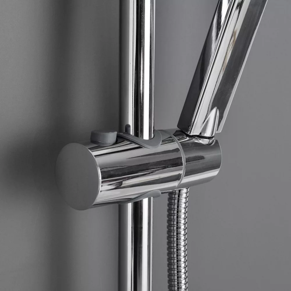 Zestaw prysznic owy Olca posiada szereg przydatnych funkcji, w tym przełącznik przepływu wody, który pozwala wybrać między użyciem chromowanej słuchawki prysznic owej ABS lub głowicy prysznicowej 1,20 cm. Korpus zestawu prysznicowego wykonany jest ze stali nierdzewnej, co zapewnia wysoką jakość. Dwa wsporniki mają regulowaną wysokość. Zaleca się montaż zestawu prysznicowego na wysokości 85 cm od podłoża .