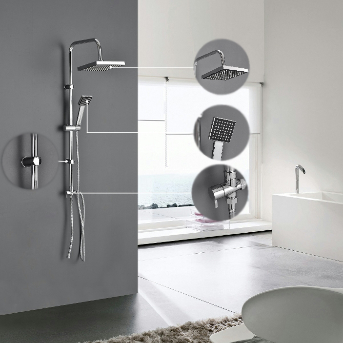Tradycyjny zestaw prysznicowy składa się zazwyczaj z ręcznej słuchawki prysznicowej, węża prysznicowego, uchwytu na słuchawkę prysznicową, kolumny prysznicowej i przełącznika prysznica. Bateria jest zazwyczaj elementem wyposażenia, ale może być również dostępna do osobnego zakupu. Bateria może być jednouchwytowa lub dwuuchwytowa. Niektóre zestawy prysznicowe mogą być wyposażone w głowicę deszczową, funkcję bidetu, wylewkę wannową, a nawet baterię termostatyczną.