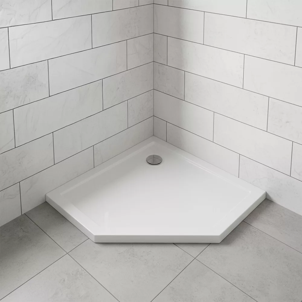 Pięciokątna brodzik: Brodzik z zaokrąglonymi narożnikami ma nowoczesny wygląd i stanowi kompromis między oszczędnością miejsca a kanciastym kształtem.