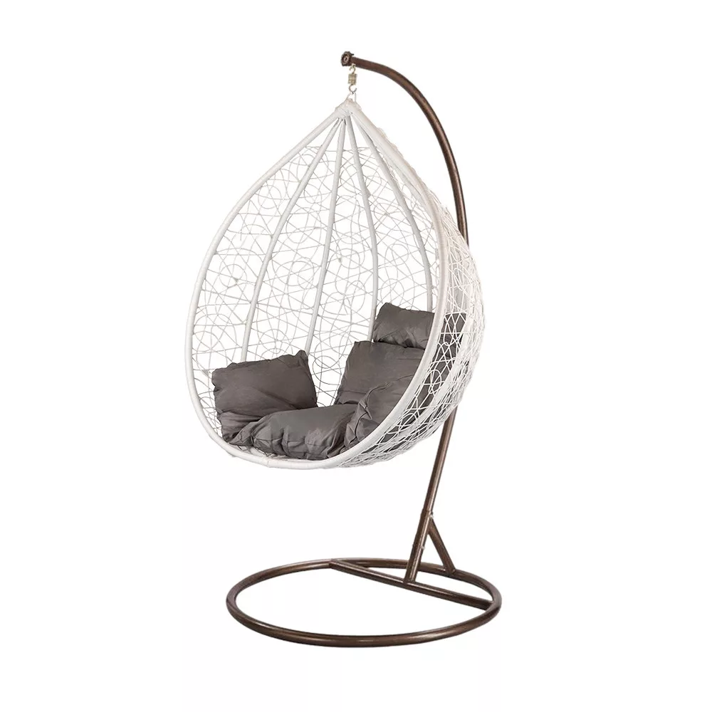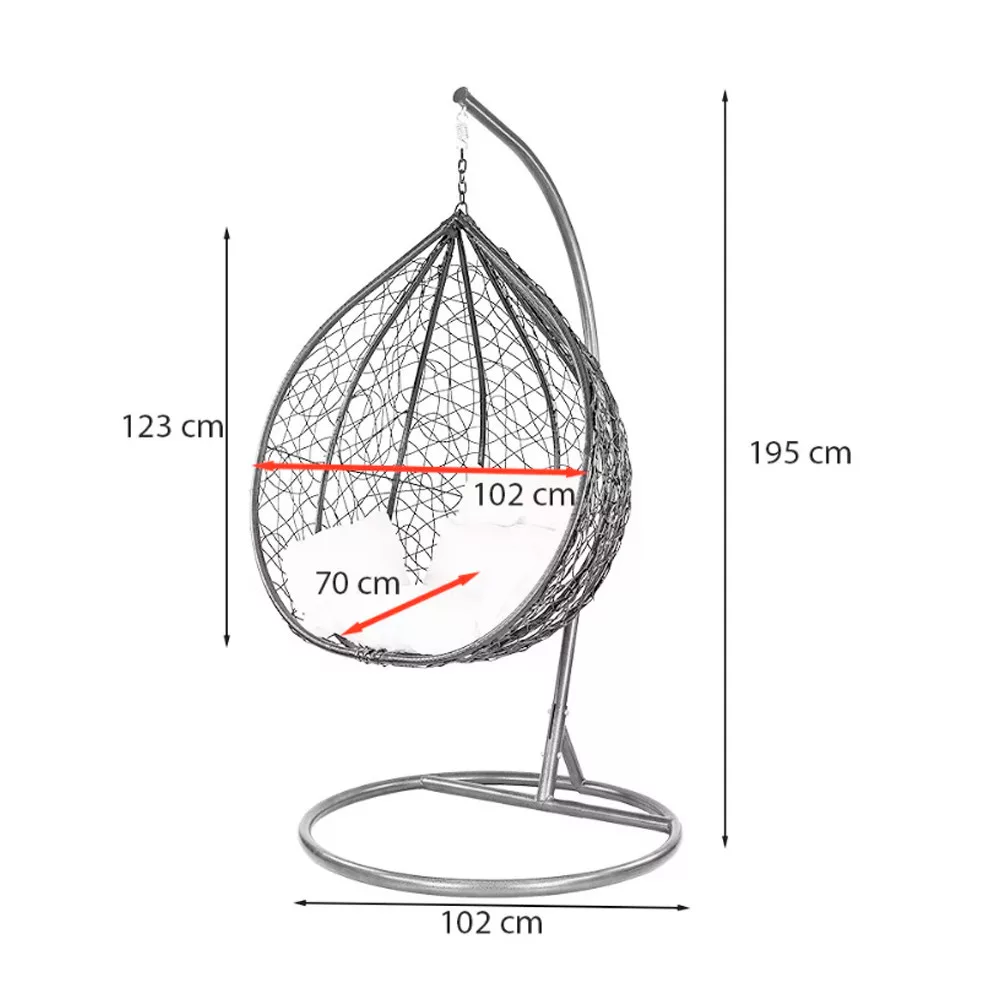 A fotel kétrészes, puha fehér párnával van ellátva, amelyek kivehető, vízálló párnahuzattal rendelkezik, így könnyű a tisztítása. A 195 cm magas és 102 cm átmérőjű vázszerkezet, és a 123 cm magas, 102 cm átmérőjű és 70 cm mélységű kosár komfortos helyet kínál a pihenéshez.