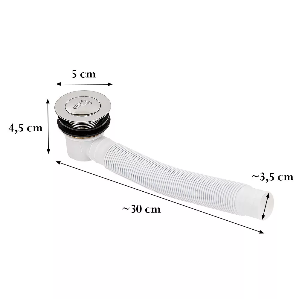 - Rura o średnicy 3,5 cm zapobiega blokowaniu i zatykaniu odpływu