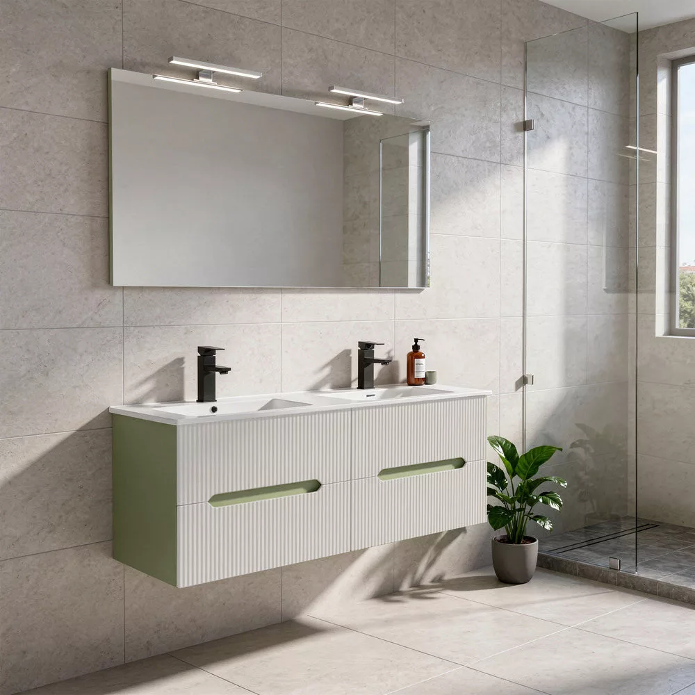 Leziter Trent Meble łazienkowe Umywalka ceramiczna 120 cm (4 szuflady) z lustrem Jasnozielony - Biały