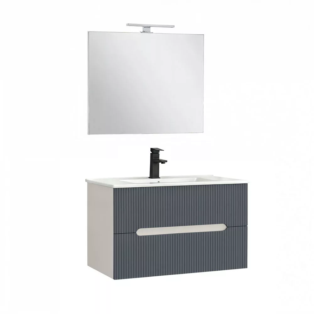 Leziter Trent Meble łazienkowe Umywalka ceramiczna 80 cm (2 szuflady) z lustrem Biały - Antracytowy szary