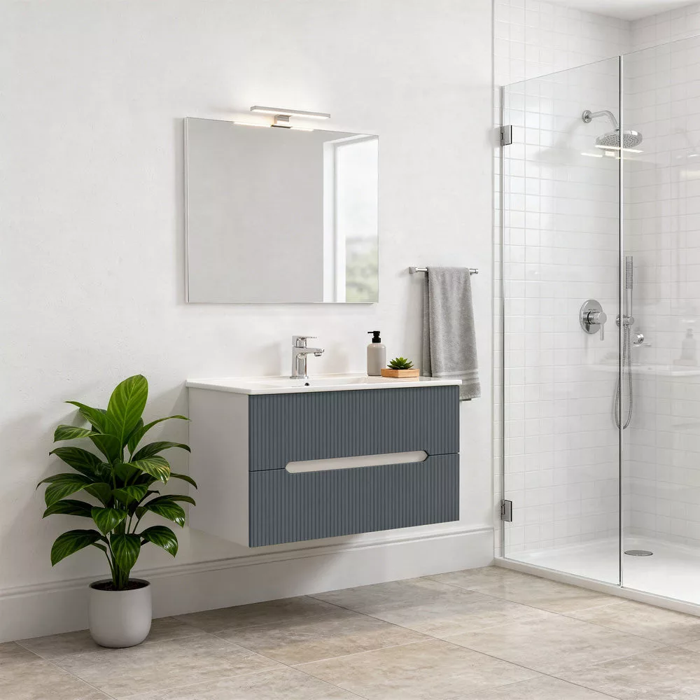 Meble łazienkowe Leziter Trent harmonijnie łączą w sobie estetykę i praktyczność. Żebrowany panel przedni nadaje mu czysty, nowoczesny charakter, a zintegrowany uchwyt pozwala na wygodne użytkowanie. Mocowanie do ściany zapewnia swobodny wygląd i przyspiesza czyszczenie podłogi. Ceramiczna umywalka jest trwała, ponadczasowa, odporna na codzienne zużycie i łatwa do utrzymania w czystości.