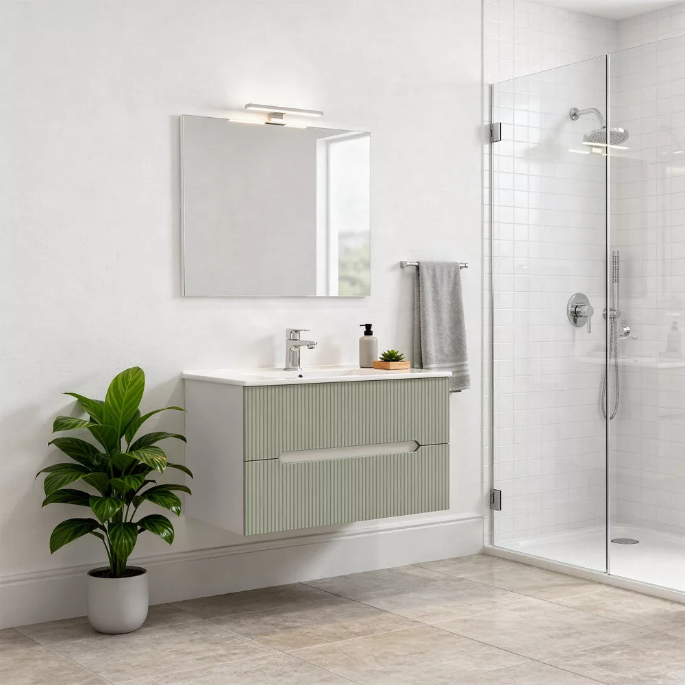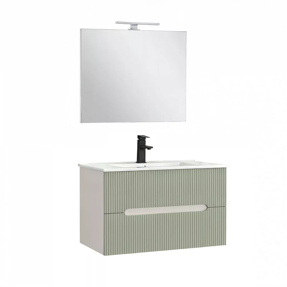 Leziter Trent Meble łazienkowe Umywalka ceramiczna 80 cm (2 szuflady) z lustrem Biały - Zielony