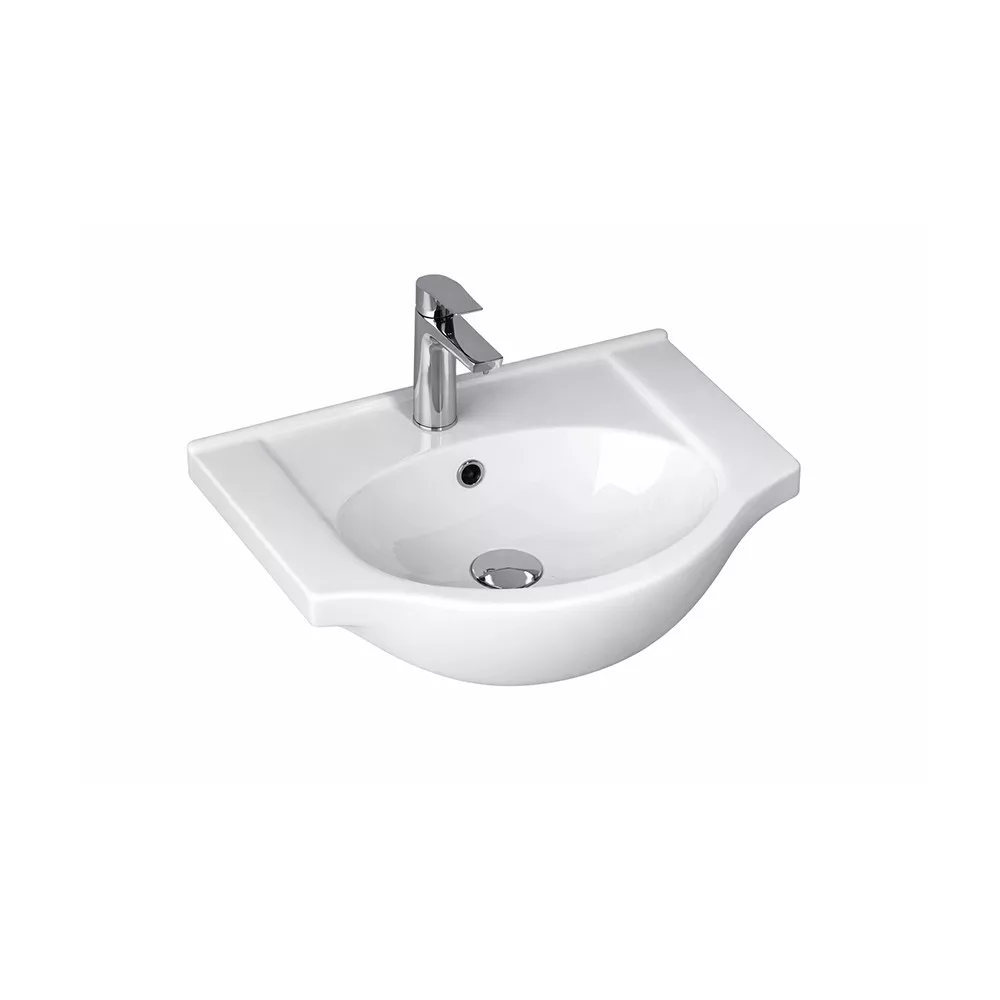 Umywalka ceramiczna V55 ze skrzydłami ma czysty design, który będzie wyglądał świetnie w każdej stylowej łazience. Kluczowa cecha nowoczesnego wzornictwa. Umywalka jest montowana na ścianie, co ułatwia utrzymanie jej w czystości.