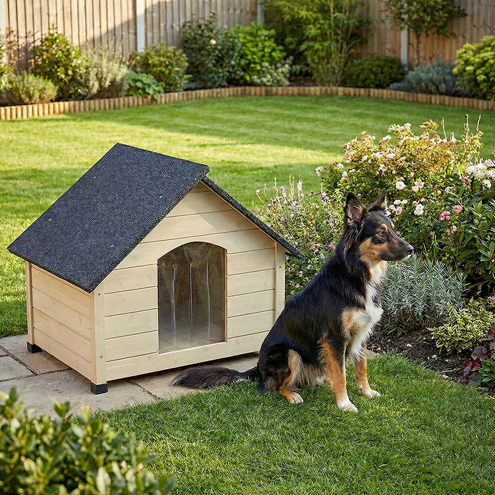 Pięć pokrytych papą nóżek unosi budę nad ziemią, zapewniając ochronę przed wilgocią i gniciem. Konstrukcja montowana na płytkach pozwala na łatwy transport i szybki montaż, a dołączone drzwi z osłoną termiczną zapobiegają przedostawaniu się zimnego powietrza, deszczu lub wiatru do wnętrza. Dzięki temu Twój zwierzak może odpoczywać wygodnie, sucho i bezpiecznie przez całą zimę i lato.