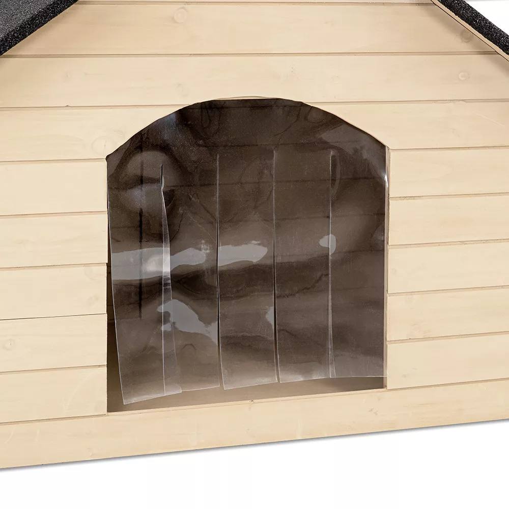 Pięć pokrytych papą stóp unosi budę nad ziemią, zapewniając ochronę przed wilgocią i gniciem.Konstrukcja montowana na panelach pozwala na łatwy transport i szybki montaż, a dołączone drzwi z osłoną termiczną zapobiegają przedostawaniu się zimnego powietrza, deszczu lub wiatru do wnętrza. Dzięki temu Twój zwierzak może odpoczywać wygodnie, sucho i bezpiecznie przez całą zimę i lato.