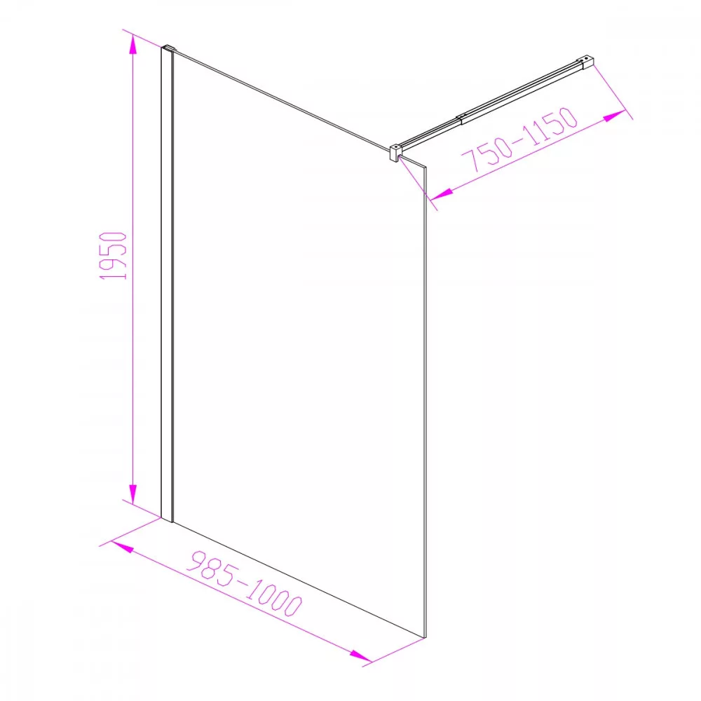 - Typ: Ścianka prysznicowa Walk-In 100×195 cm, bezpieczne szkło hartowane 8 mm, chromowany profil aluminiowy