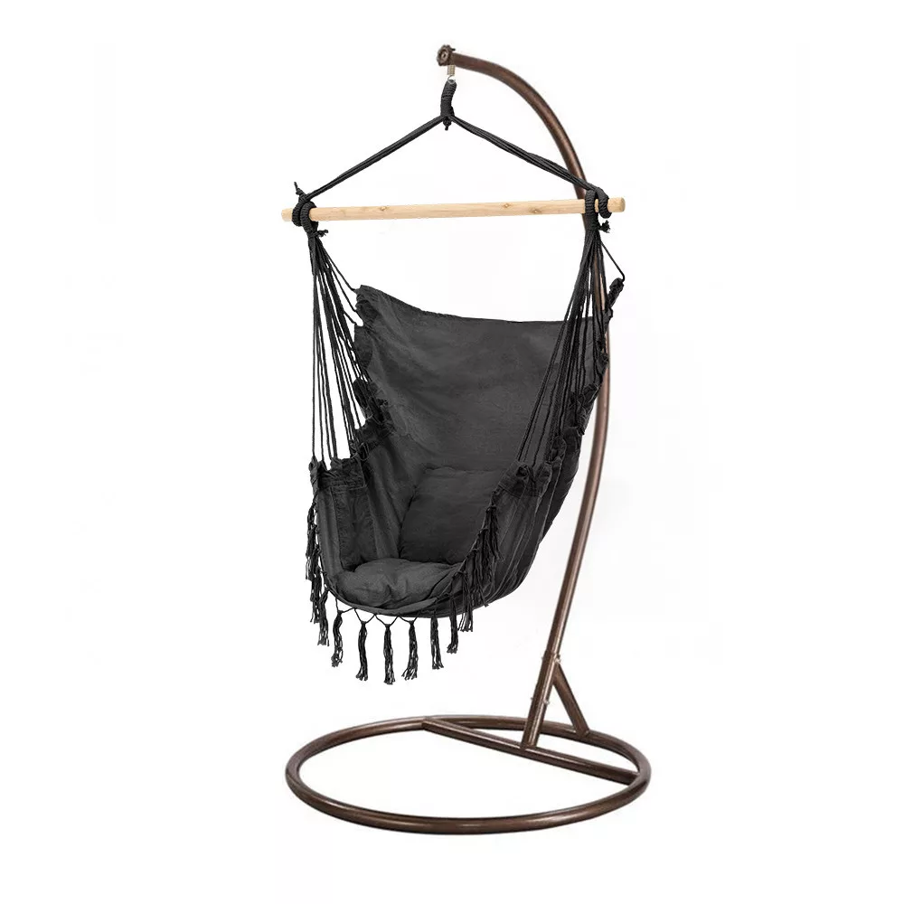 Fotel hamakowy Leziter Puerto ze stojakiem czarno-brązowy - Zrelaksuj się stylowo, w dowolnym miejscu w domu