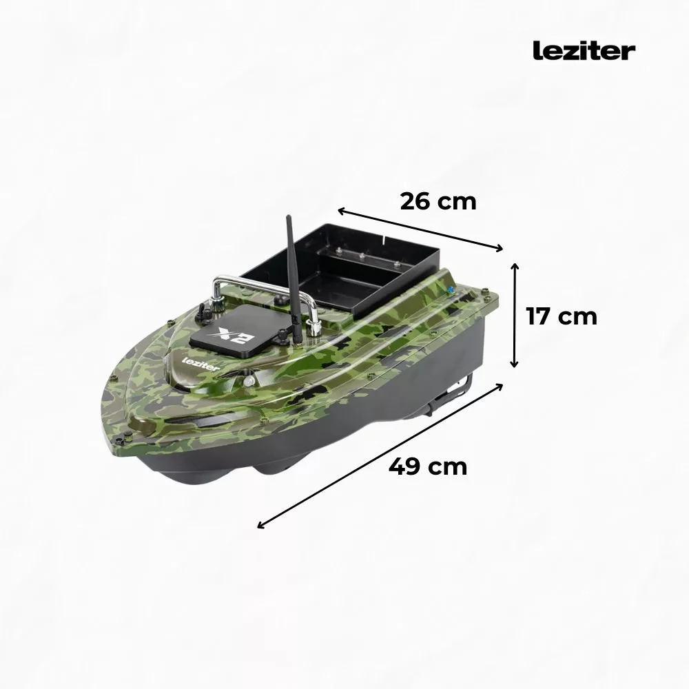 Kluczowe cechy feedera Leziter X2 Backpacker Green Camouflage Feeding Boat