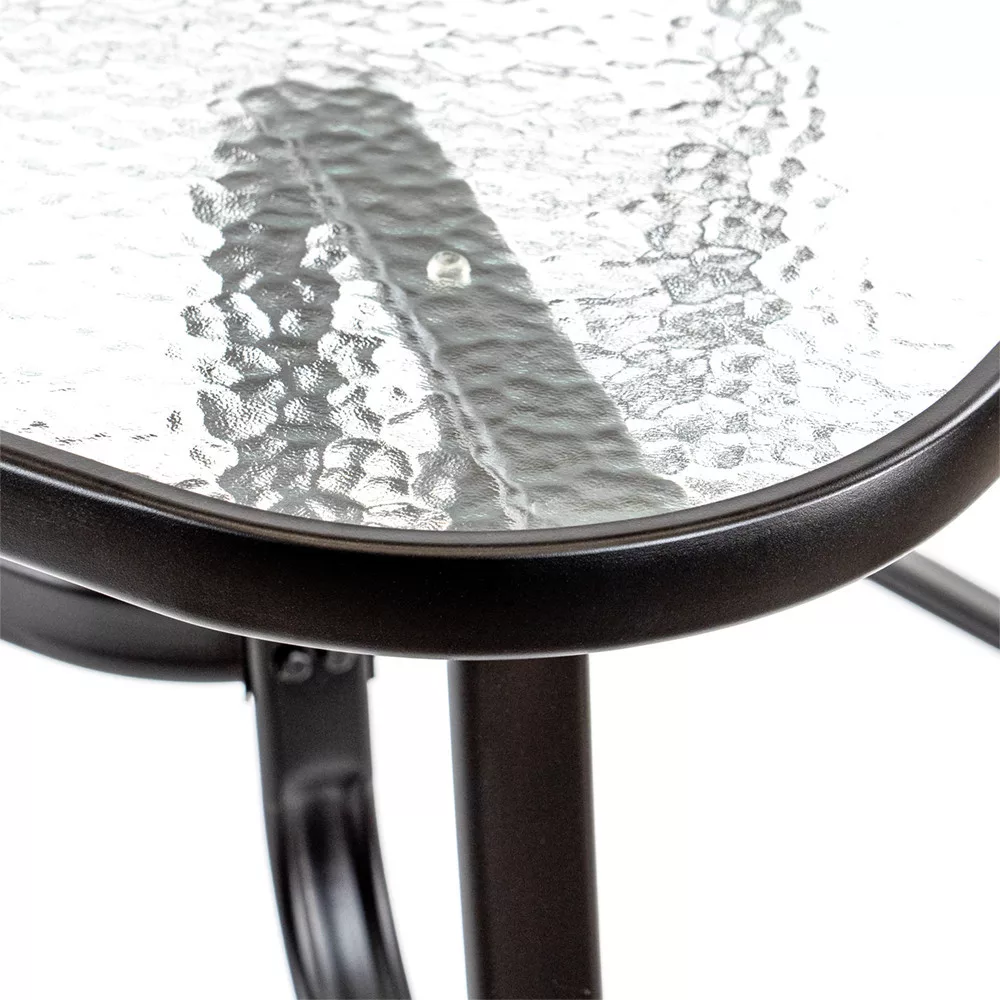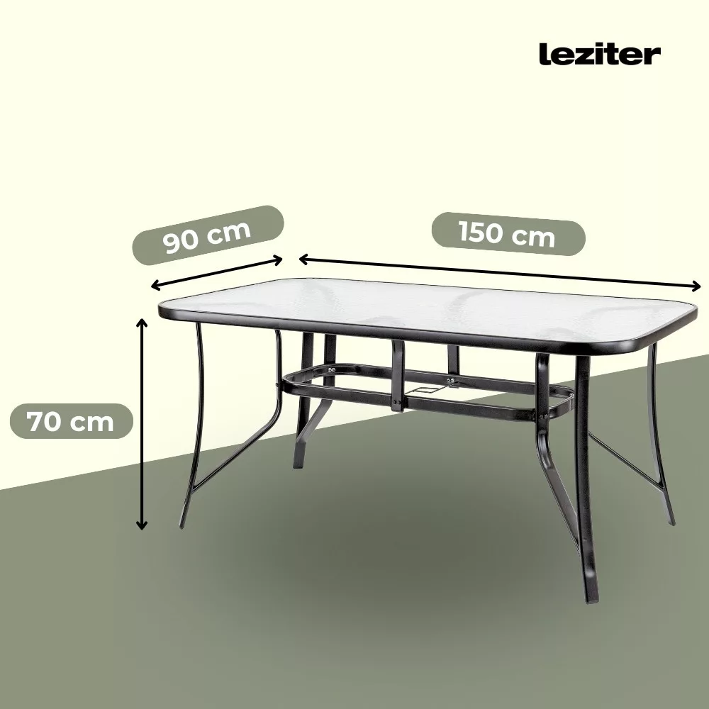 Szklane stoły ogrodowe z metalową ramą są trwałe i mogą wytrzymać warunki pogodowe, takie jak deszcz lub światło słoneczne. Stalowa rama o grubości 42x14 mm z malowanym proszkowo wykończeniem zapewnia odporność na korozję i długą żywotność.