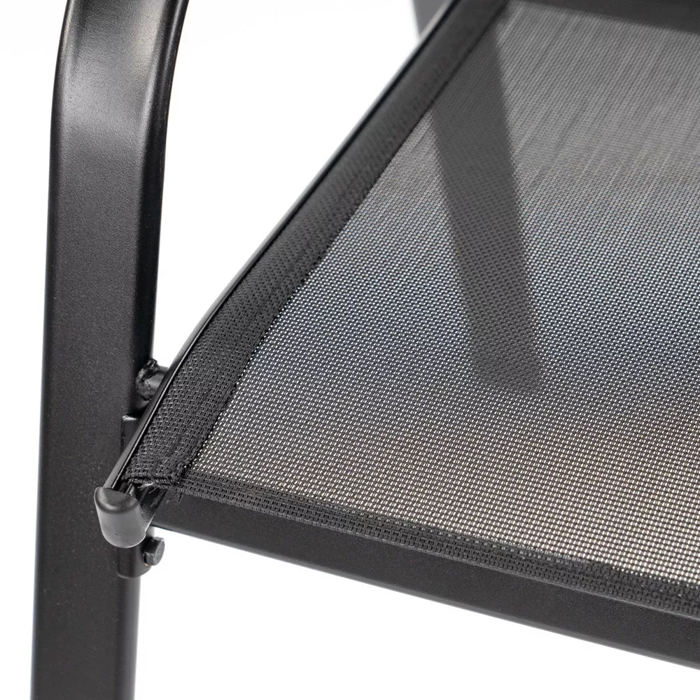Krzesło ogrodowe Lorca ma elegancki i nowoczesny wygląd, który jest idealnym dodatkiem do każdego patio lub ogrodu. Dzięki solidnej, niezawodnej, malowanej proszkowo stalowej ramie jest wytrzymałe i odporne na warunki atmosferyczne, a także można je sztaplować. Textilene to mocny materiał z włókna poliestrowego pokryty PVC dla zapewnienia trwałości i odporności. Jest to szczególnie popularny wybór mebli ogrodowych ze względu na odporność na promieniowanie UV, wygodę i łatwość czyszczenia.