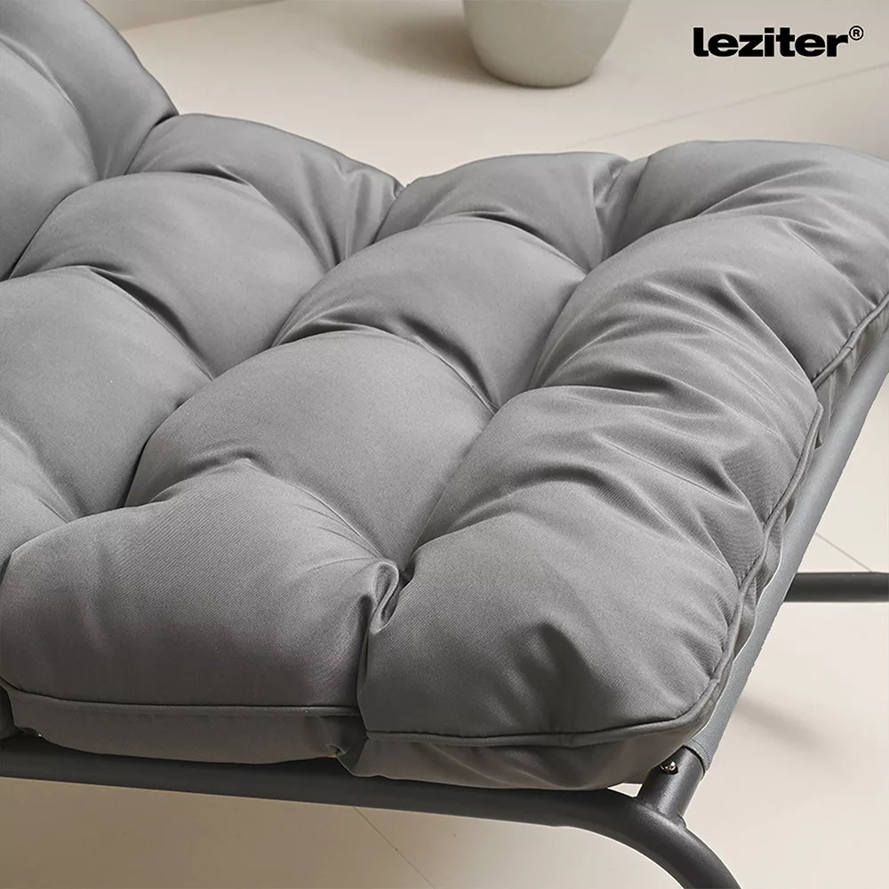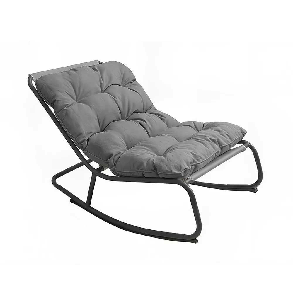 Powierzchnia siedziska fotela bujanego Zen jest wykonana z grubejpianki , która zapewnia wygodne podparcie podczas siedzenia i relaksu.Pokryta poliestrem poduszka z pikowanym wzorem pomaga zachować kształt, a jednocześnie zapewniamiękką i wygodną powierzchnię do krótszego lub dłuższego relaksu. Poduszka w kolorze szarym nadaje fotelowi bujanemu stonowany, neutralny wygląd, który z łatwością wkomponuje się w różne style, niezależnie od tego, czy jest to miejsce do siedzenia w ogrodzie, na patio czy w salonie. Kontrast między jasnym siedziskiem i czarną stalową ramą tworzy nowoczesny, czysty wygląd.