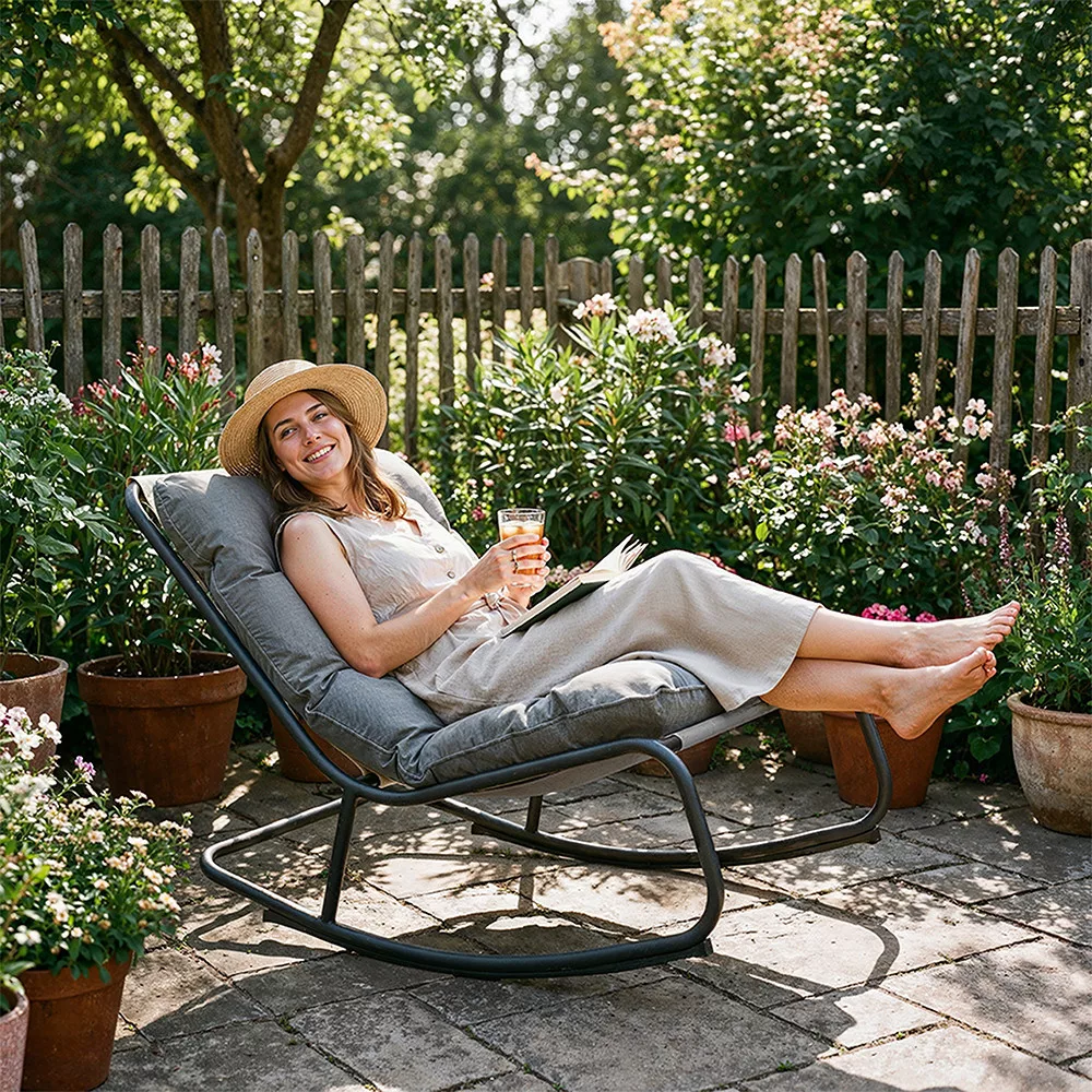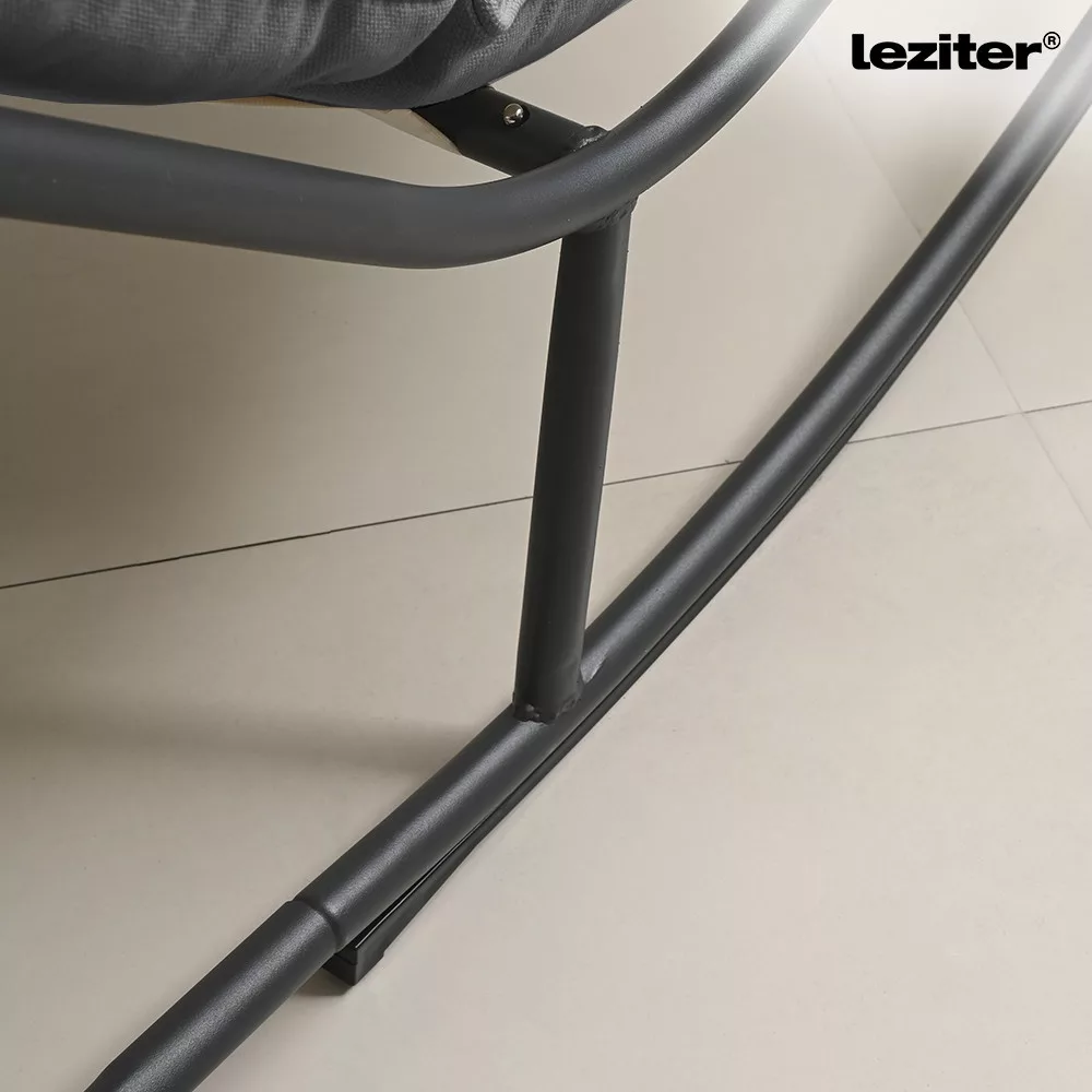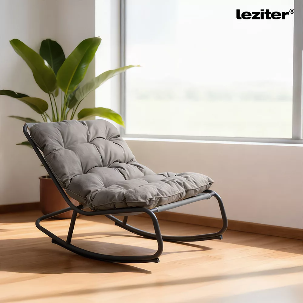 Ogrodowy fotel bujany Leziter Zen to fotel wypoczynkowy, który umożliwia bujanie się podczas siedzenia. Konstrukcja jest odpowiednia do odpoczynku, relaksu lub czytania, zapewniając relaksujące użytkowanie w środowisku zewnętrznym lub wewnętrznym. Kompaktowy rozmiar sprawia, że nadaje się do mniejszych tarasów, balkonów lub obszarów wypoczynkowych.