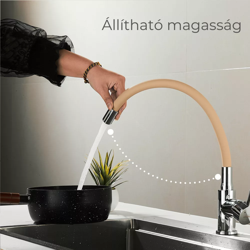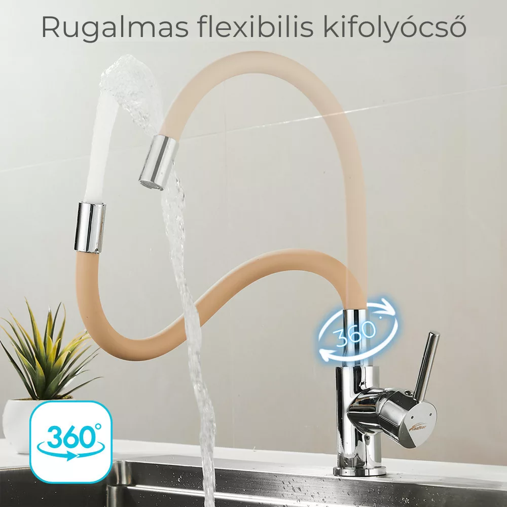 Ponadto wysokość wylewki można regulować w zakresie od 280 mm do 440 mm. Daje to niezwykle praktyczną możliwość mycia przedmiotów lub naczyń, które trudno byłoby umyć sztywną baterią zlewozmywakową. Kran łatwo dostosowuje się do warunków użytkowania, zapewniając maksymalny komfort.