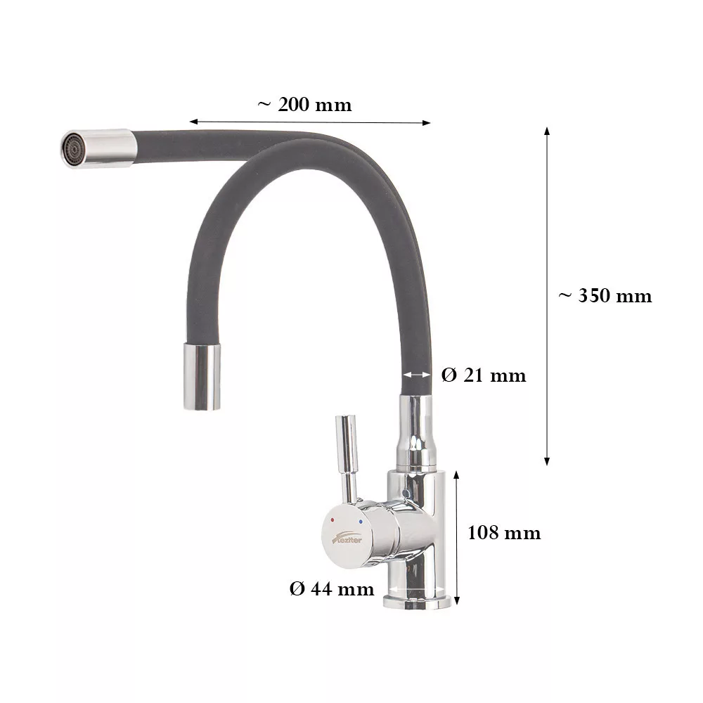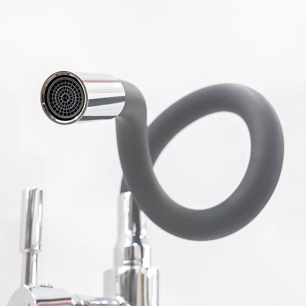 Elastyczna wylewka umożliwia zmianę jej głębokości w zakresie od 150 mm do 350 mm. Umożliwia to łatwe dostosowanie głębokości baterii Corin do odpowiedniej głębokości zapewniającej wygodne korzystanie ze zlewu.