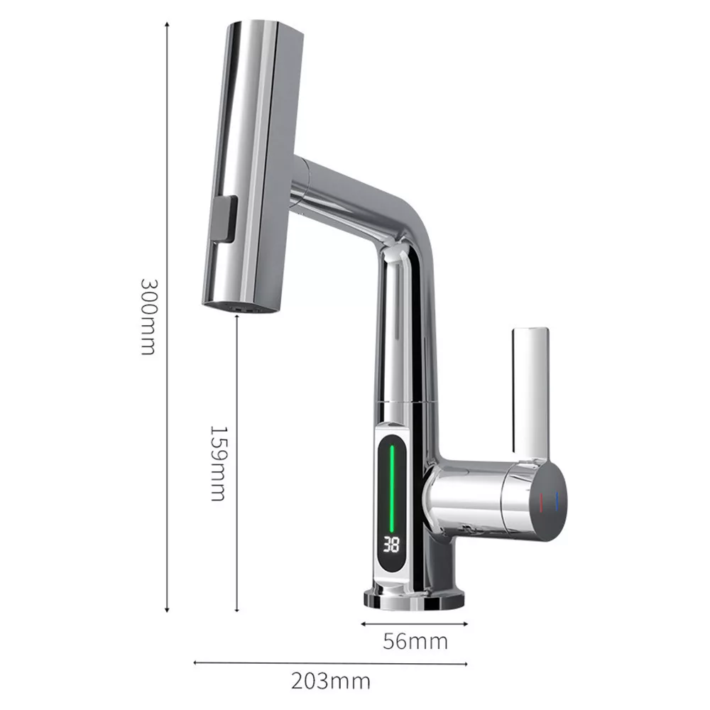 Jak wysoki jest kran? Całkowita wysokość kranu wynosi 300 mm, co jest idealnym rozmiarem dla większości zlewów kuchennych.