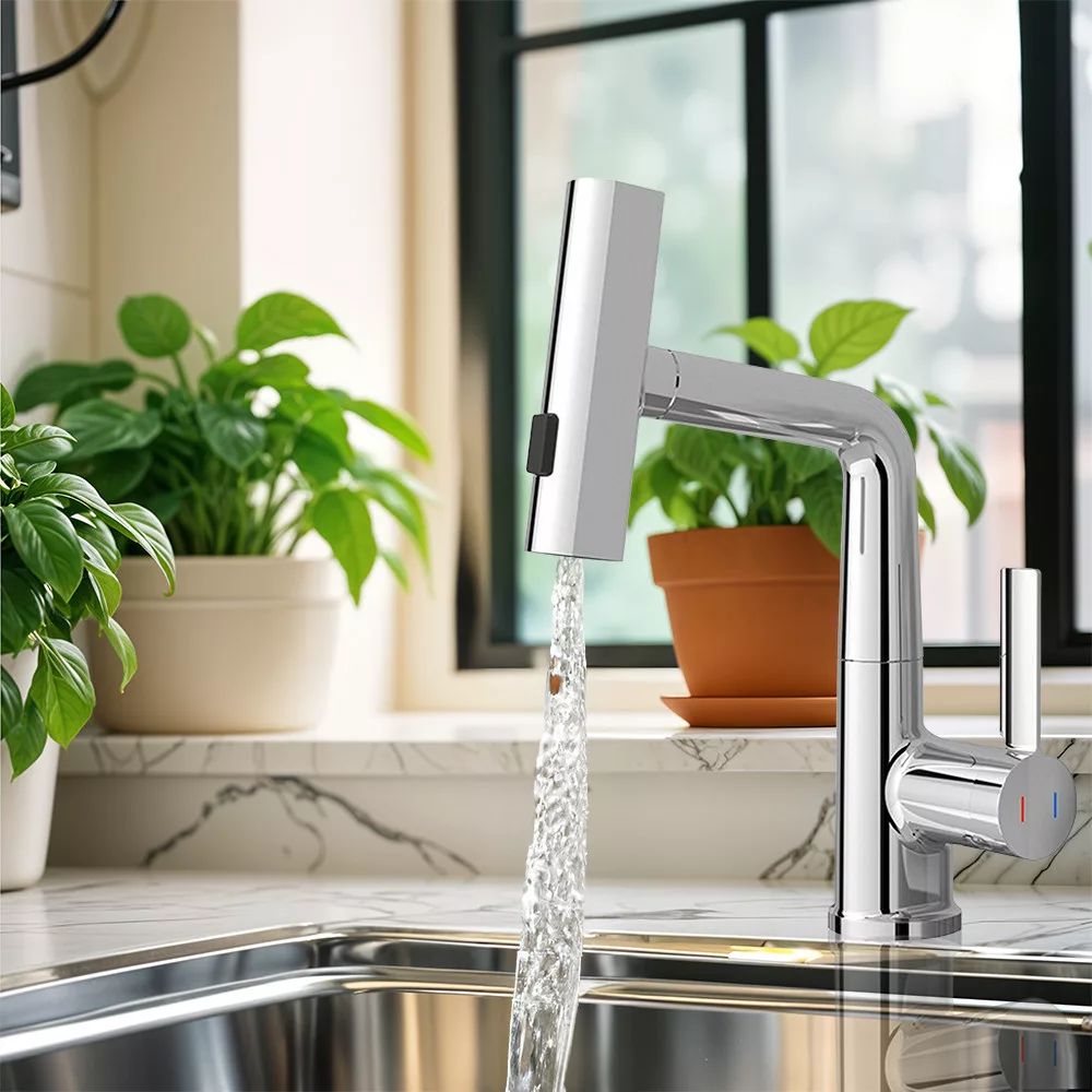Bateria Mara jest nie tylko klejnotem nowoczesnych kuchni, ale także wyróżnia się praktycznością. Wielofunkcyjna głowica umożliwia szybkie i wydajne wykonywanie różnych zadań kuchennych, a obrotowa o 360° i wyciągana konstrukcja zapewnia maksymalną elastyczność.