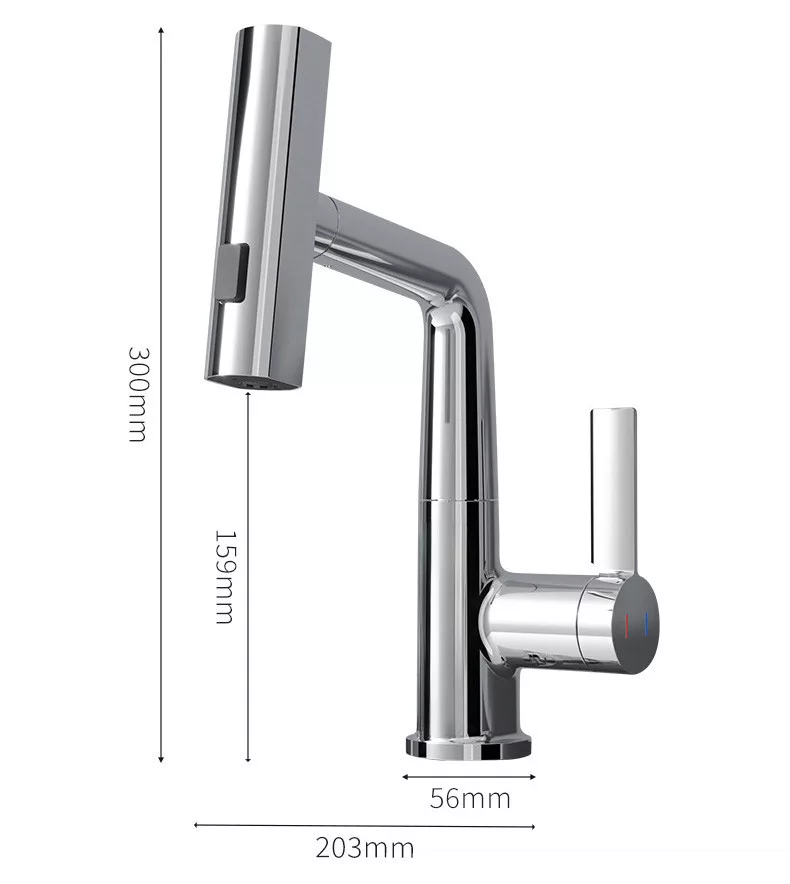 Jak wysoki jest kran? Całkowita wysokość kranu wynosi 300 mm, co jest idealnym rozmiarem dla większości zlewów kuchennych.