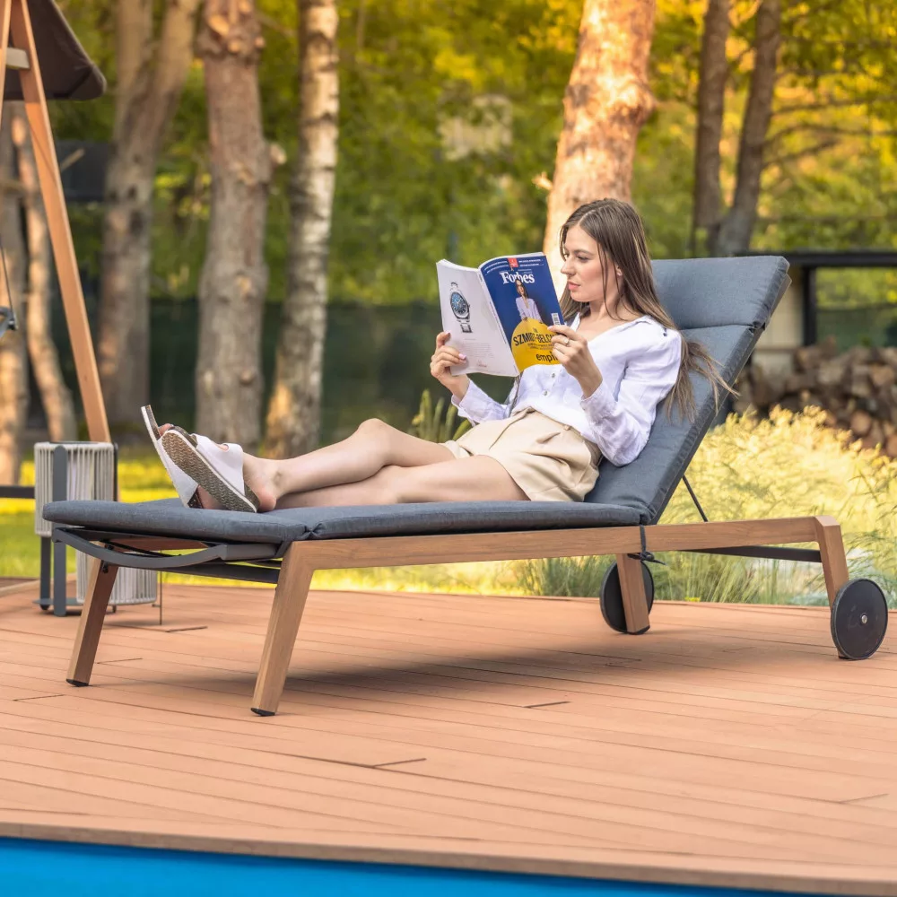 Leżak charakteryzuje się nowoczesnym i eleganckim designem, a połączenie antracytowego siedziska i drewnianej ramy doskonale wpisuje się w nowoczesną i minimalistyczną aranżację. Ten designerski leżak polecany jest każdemu, kto ceni sobie połączenie funkcjonalności z doskonałym stylem.