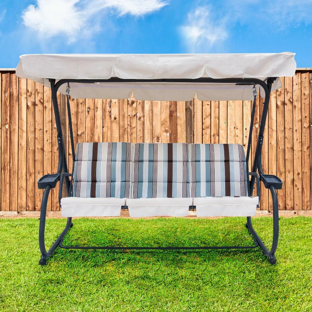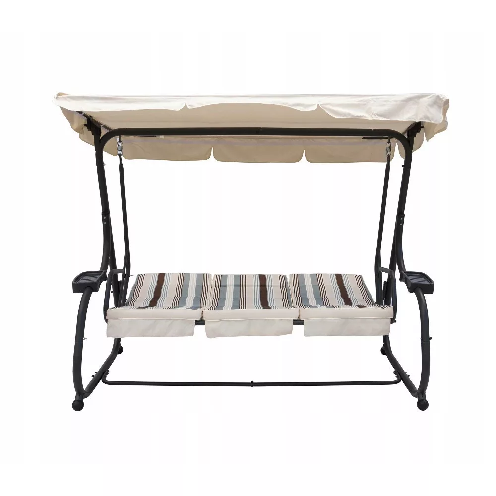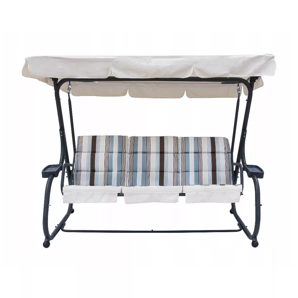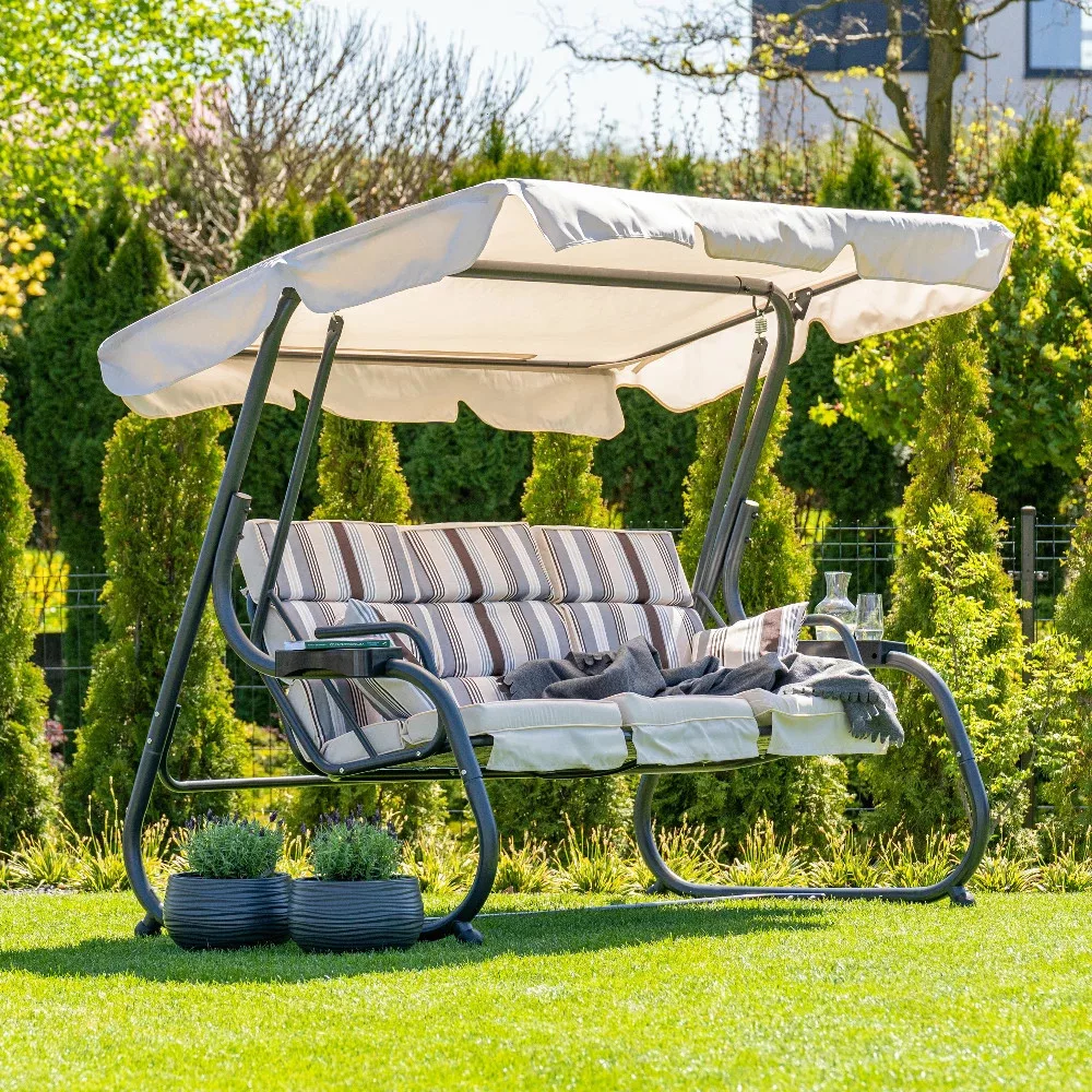 Funkcją huśtawki ogrodowej jest odchylana pozycja oparcia, która pozwala na relaks w dowolnej pozycji. Zaletą jest regulowany uchylny daszek, który chroni przed silnym nasłonecznieniem lub podczas letniego deszczu. Zastosowane materiały są odporne na warunki atmosferyczne, zapewniając dłuższą żywotność. Funkcja odchylania oparcia pozwala na relaks w dowolnej pozycji. Poduszki w zestawie znacznie zwiększają komfort siedzenia . Regulowany, uchylny daszek chroni zarówno przed słońcem, jak i letnim deszczem.