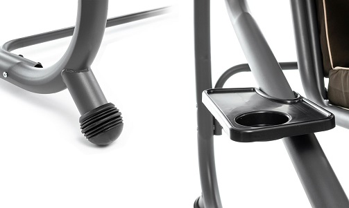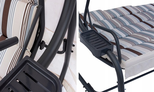 Konstrukcja huśtawki ogrodowej wykonana jest ze stali malowanej proszkowo, co ma znaczący wpływ na trwałość powłoki. W konstrukcji huśtawki ogrodowej zastosowano poliester , dzięki czemu materiał w bardzo niewielkim stopniu chłonie wodę. Zastosowane materiały charakteryzują się trwałością.