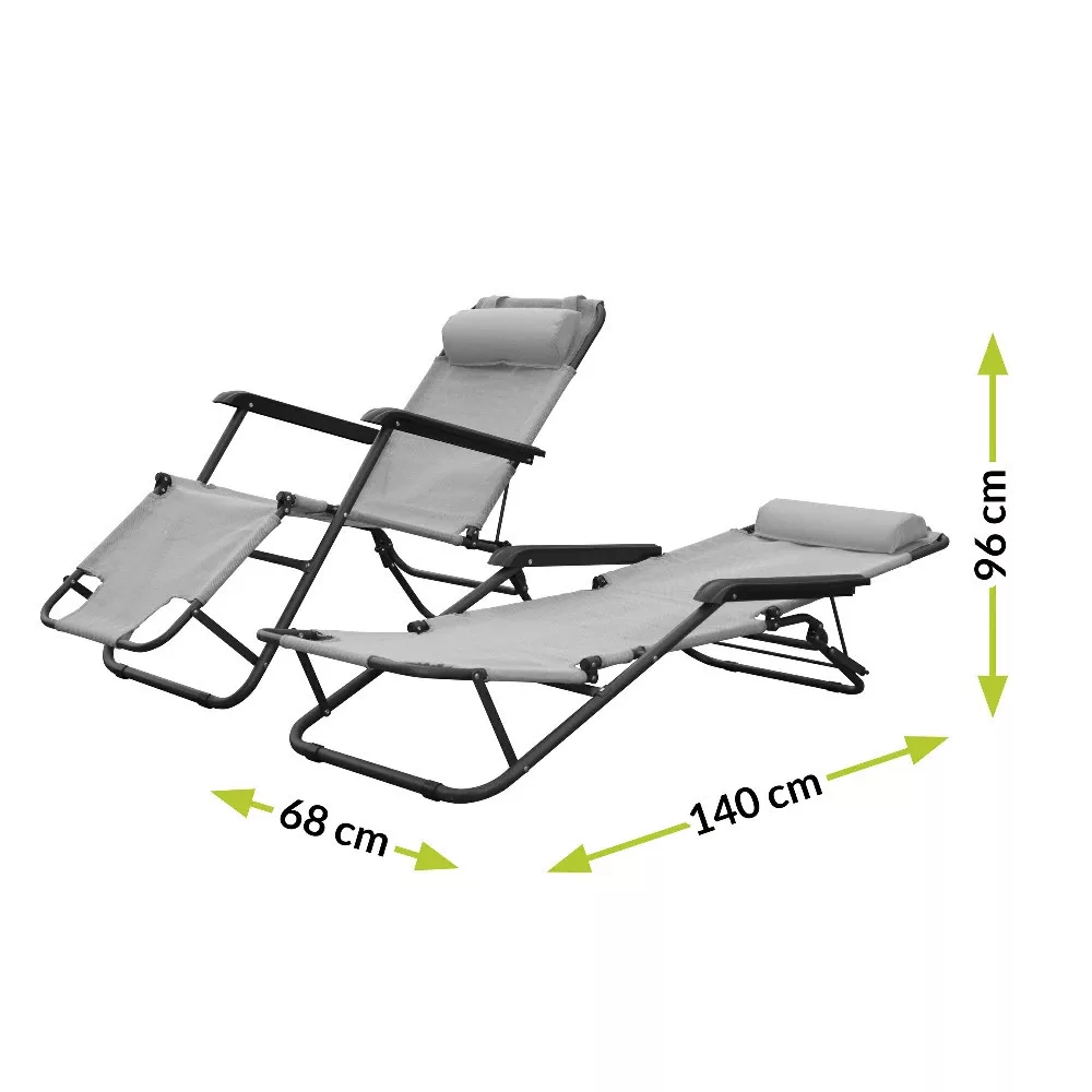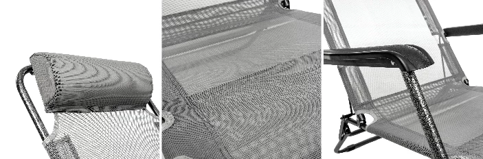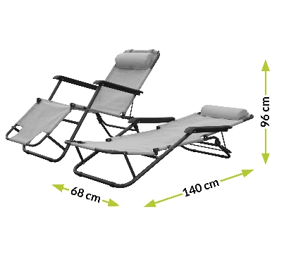 Wygodne siedzisko dopasowuje się do kształtu ciała użytkownika. Jego zaletą są zintegrowane podłokietniki i zagłówek, które znacznie zwiększają komfort użytkowania. Wielofunkcyjny leżak można regulować w 2 wersjach - siedzącej i leżącej.