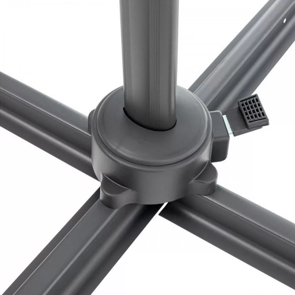 Na stabilność parasola ogrodowego istotny wpływ ma krzyżowa podstawa. Dla wygody użytkownika można ją łatwo złożyć za pomocązamocowanego na stałe uchwytu . Zaletą parasola jest połączenie mechanizmu obrotowego w podstawie i regulacji kąta nachylenia.Pozwala to na dowolne ustawienie parasola i dobranie pozycji zacienienia w zależności od kąta padania promieni słonecznych.