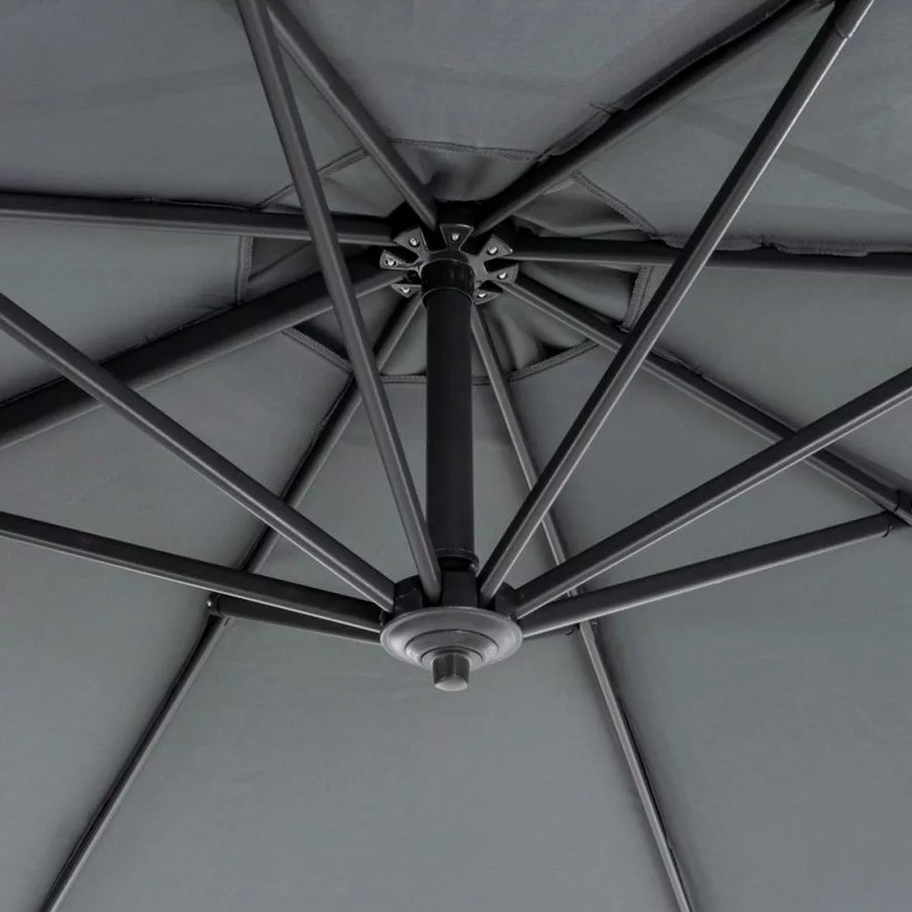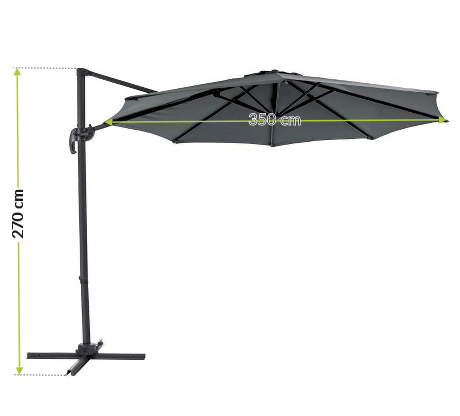 Osłona przeciwsłoneczna jest umieszczona z boku konstrukcji, umożliwiając 100% wykorzystanie zacienionego obszaru.Parasol przeciwsłoneczny pozwala stworzyć zacienione miejsce do relaksu, wspólnego posiłku lub spotkania z bliskimi. Parasole ogrodowe to niezbędny element wyposażenia ogrodu. Zapewniają doskonałą ochronę zarówno przed słońcem, jak i letnim deszczem.