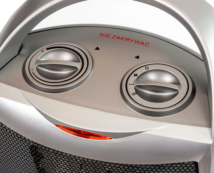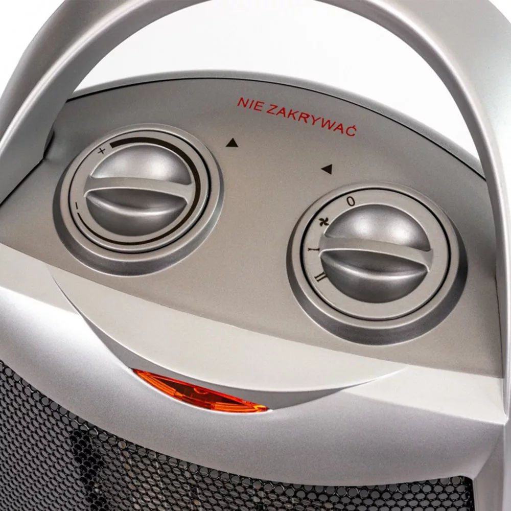 Termowentylator posiada 2-stopniową regulację mocy (750W / 1500W). Ręczny termostat nagrzewnicy elektrycznej pomaga osiągnąć żądaną temperaturę. Grzejnik elektryczny jest przeznaczony do użytku wzamkniętych pomieszczeniach. Może być używany zarówno w salonie, jak i w sypialni. Sprawdzi się również na kempingu.
