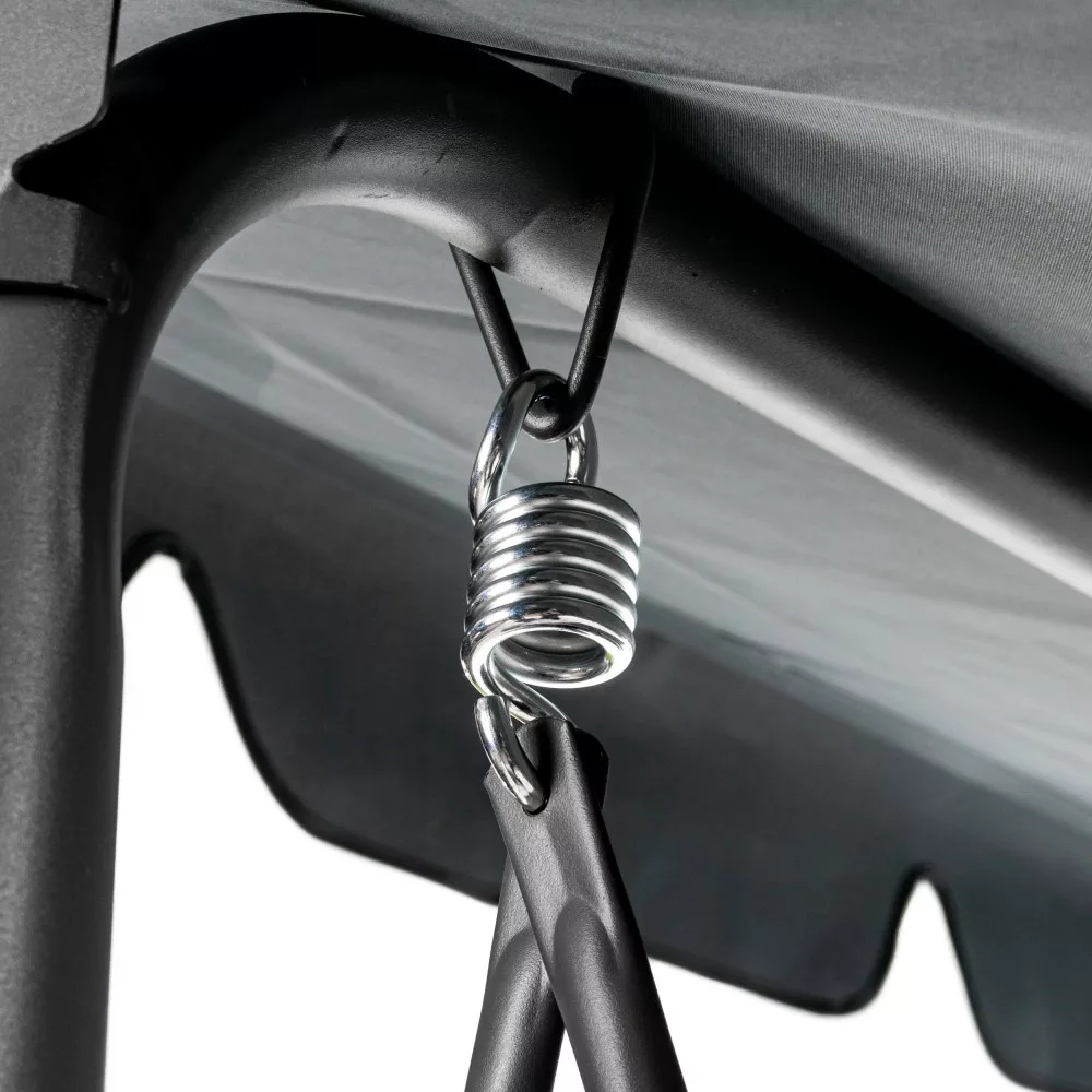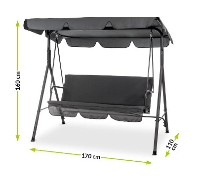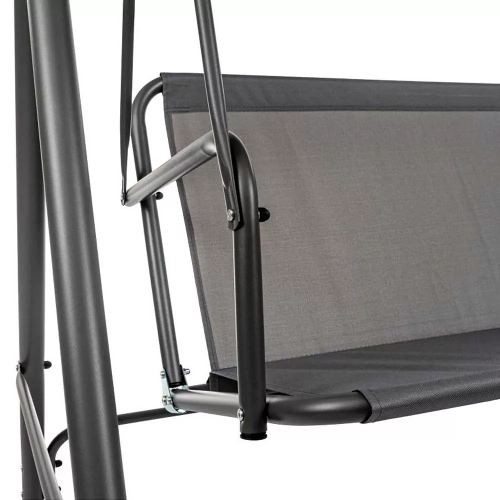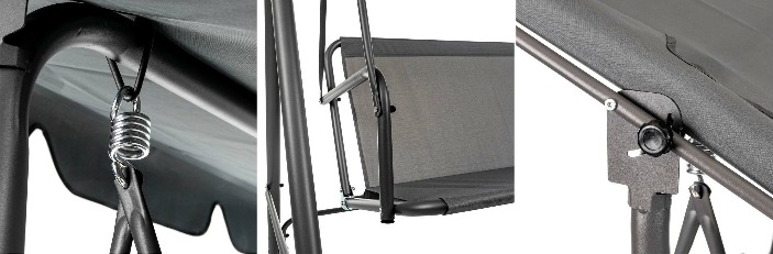 Konstrukcja huśtawki ogrodowej to stal malowana proszkowo, co znacząco wpływa na trwałość powłoki. Huśtawka ogrodowa została zaprojektowana przy użyciu poliestru , dzięki czemu materiał wchłania bardzo mało wody, więc sprawdza się podczas letniego deszczu. Zastosowane materiały charakteryzują się trwałością.