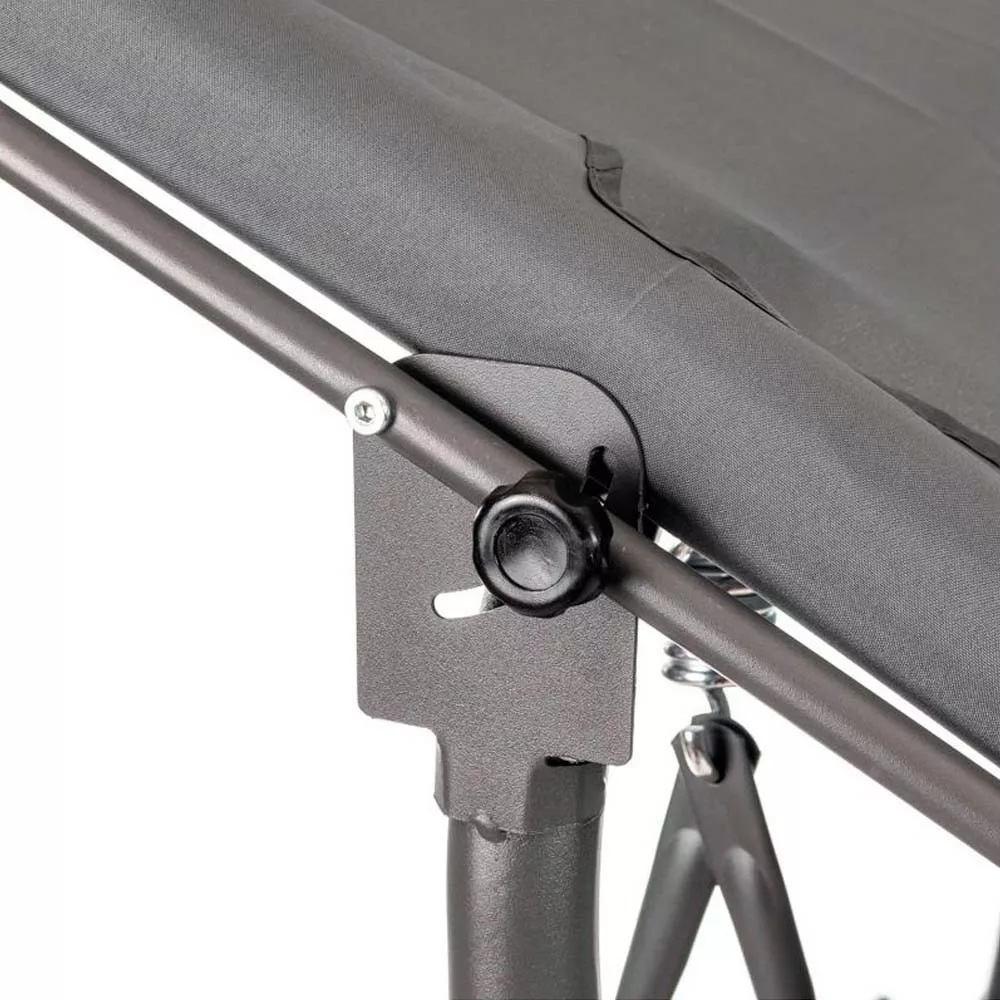 Produkt posiada podłokietniki, co znacznie zwiększa komfort siedzenia. W zestawie znajdują się poduszki na siedzisko o grubości do 5 cm. Jego zaletą jest regulowany kąt nachylenia markizy, która chroni przed silnymi promieniami słonecznymi lub podczas letniego deszczu. Siedzisko wyposażone jest w wygodne poduszki z wodoodporną powłoką. Dodatkowo daszek przeciwsłoneczny jest regulowany, co zapewnia komfort użytkowania niezależnie od warunków pogodowych.