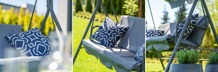 Znajdujące się w zestawie poduszki znacznie zwiększają komfort siedzenia. Huśtawki ogrodowe doskonale sprawdzą się zarówno w ogrodzie, jak i na patio, pozwalając na relaks podczas delikatnego kołysania.
