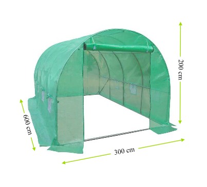 Nowoczesny tunel foliowy posiada podnoszone drzwi, co znacznie zwiększa komfort użytkowania. Jego zaletą jest okno o 8 oczkach, które zapewnia cyrkulację powietrza, jednocześnie chroniąc przed niechcianymi owadami. Zdjęcie produktu ma charakter poglądowy, opakowanie zawiera jedynie folię, a nie stelaż.