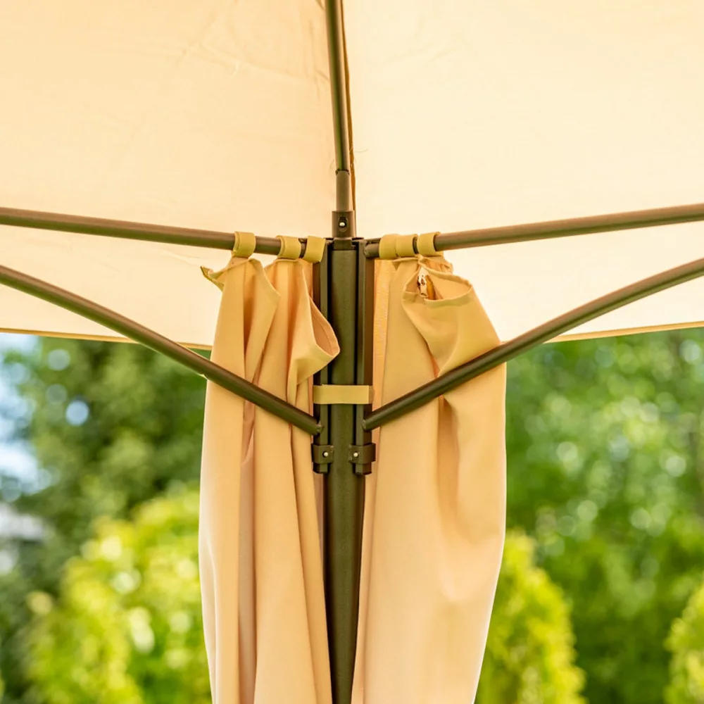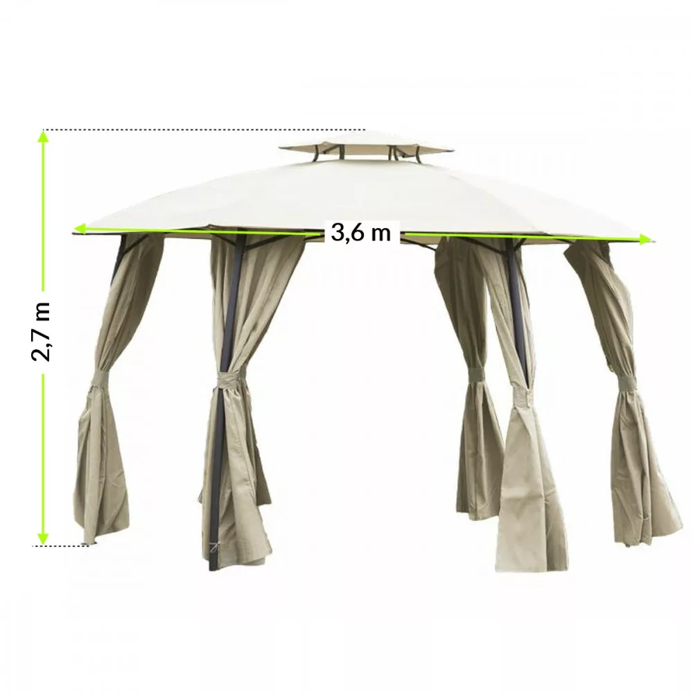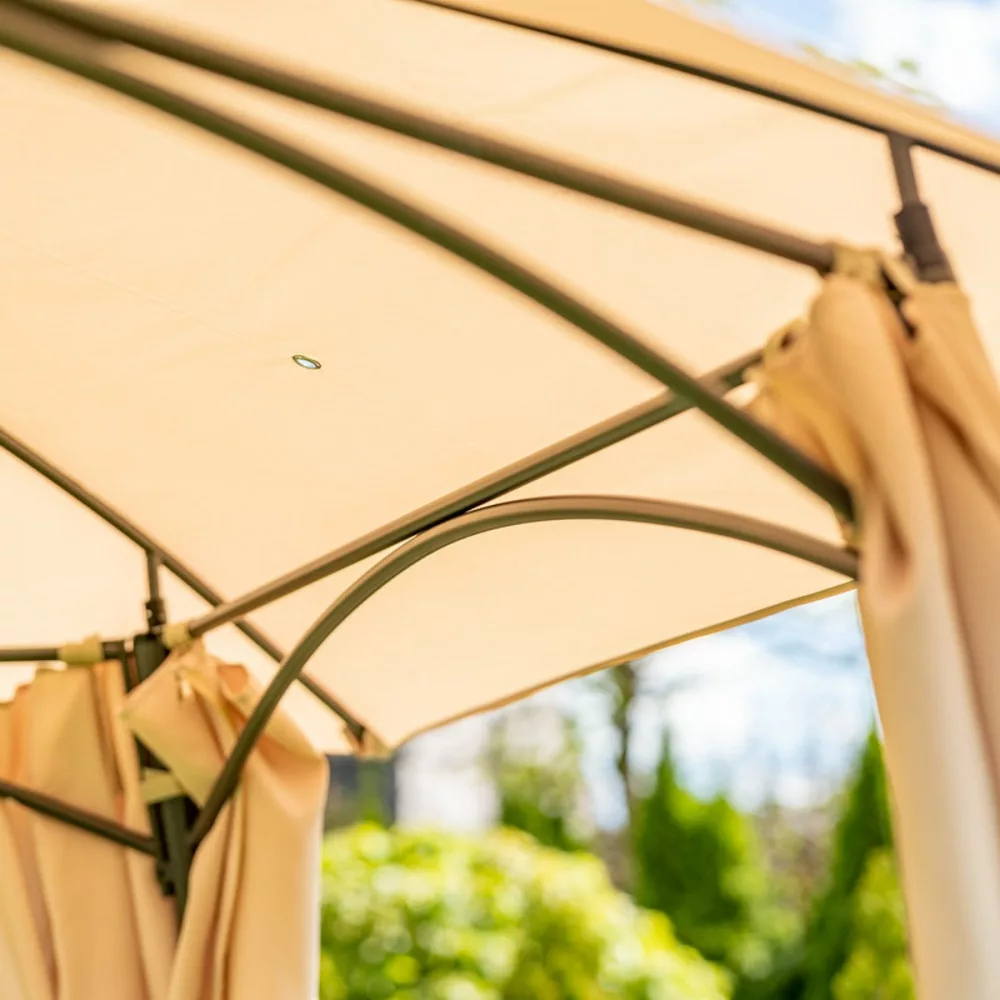 Altany ogrodowe to idealne rozwiązanie dla miłośników wypoczynku na świeżym powietrzu. Altana ogrodowa w kolorze beżowym doskonale sprawdzi się na patio, tarasie lub w ogrodzie. Altana ogrodowa zapewnia wspaniałe miejsce do relaksu lub spotkań z bliskimi. Altana ogrodowa jest idealna do zacienienia mebli ogrodowych lub wanny z hydromasażem.
