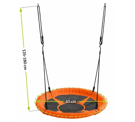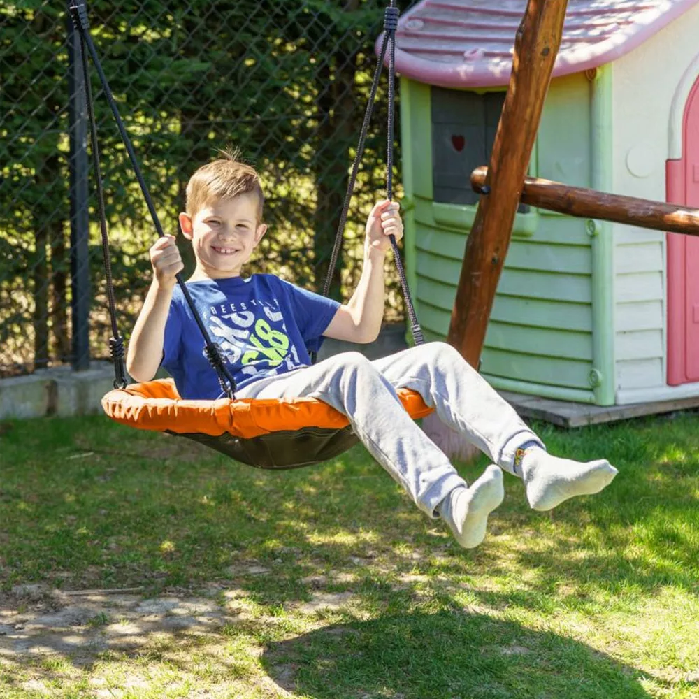 Pomarańczowa huśtawka dla dzieci doskonale sprawdzi się jako huśtawka ogrodowa, a także jako huśtawka pokojowa. Średnica siedziska pozwala na beztroskie chwile radości. Huśtawka to atrakcja dla dzieci, która zachęcado bezpiecznej zabawy na świeżym powietrzu.