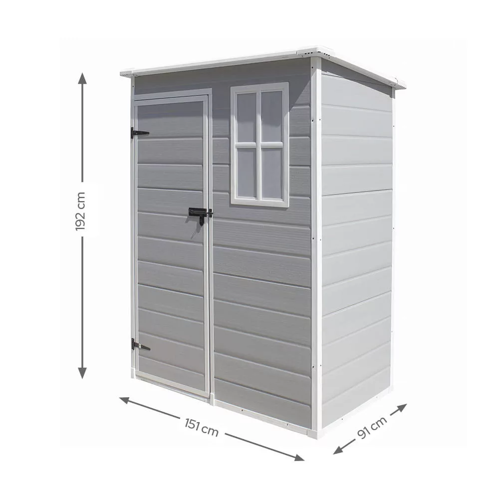 A 151 cm széles, 192 cm magas, és 91 cm mély Foster 5030 kerti szerszámos ház tökéletes megoldást kínál a kerti szerszámok, gépek és tartozékok átlátható, rendezett tárolására. A szürke, 12 mm-es PP kétrétegű falpanelekből készült szerkezet nem csak esztétikus, de az UV- és vízállóság révén hosszú élettartamot is garantál.