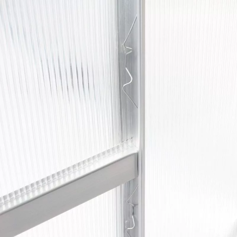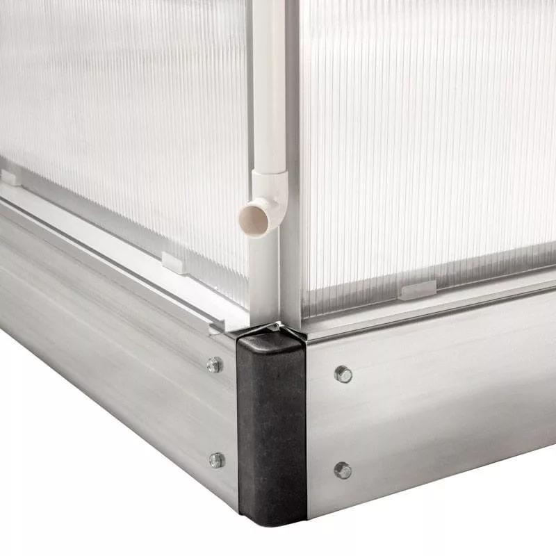 Konstrukcja ramy wykonana jest z aluminium, co zmniejsza prawdopodobieństwo korozji. Stalowa podstawa ma znaczący wpływ na stabilność i wytrzymałość szklarni. Konstrukcja ma tę zaletę, że jest łatwa w montażu i może być umieszczona w dowolnym miejscu w ogrodzie lub na działce.