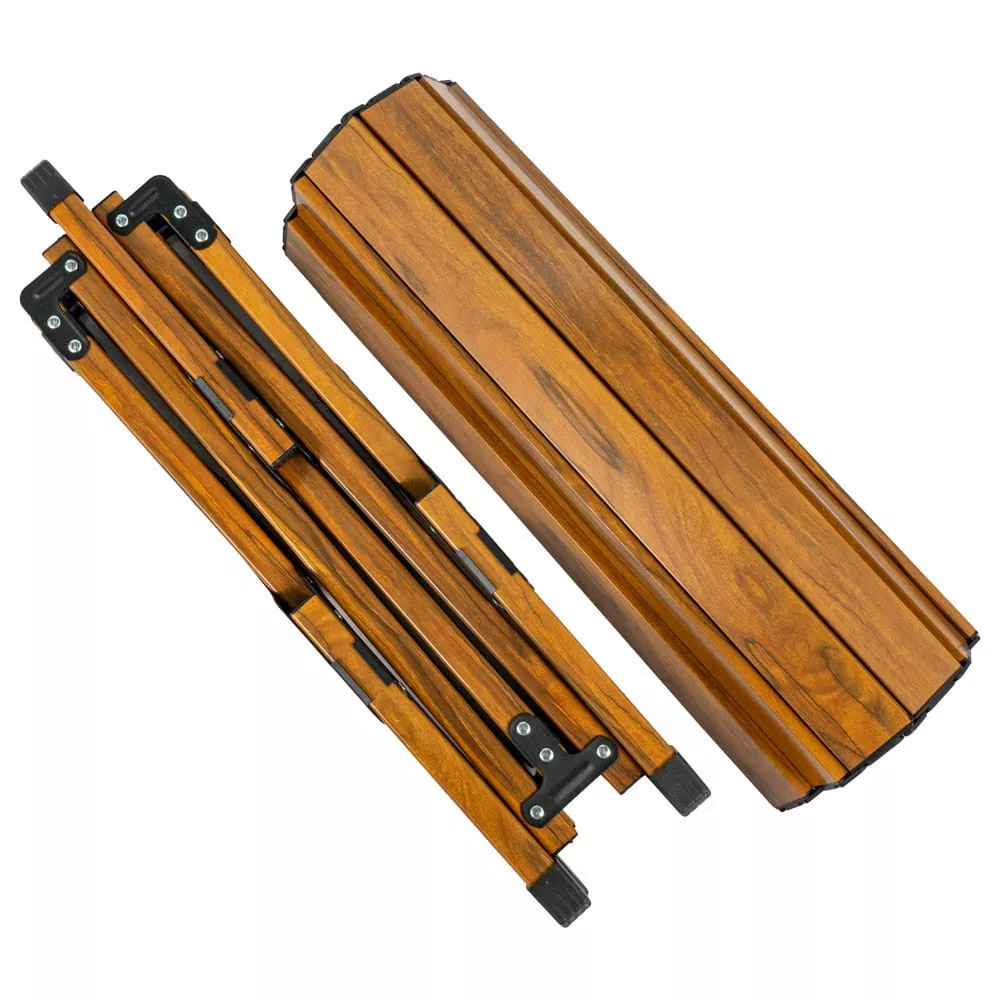 Mechanizm składania sprawia, że stolik można szybko i łatwo złożyć do niewielkich rozmiarów i schować do torby. To doskonałe rozwiązanie dla osób ceniących sobie mobilność i wygodę. Stolik kempingowy to nie tylko praktyczny towarzysz podczas wycieczek i podróży, ale także stylowy dodatek do ogrodu. Dzięki eleganckiemu designowi doskonale wtapia się w otoczenie, zapewniając idealną oprawę dla spotkań na świeżym powietrzu.