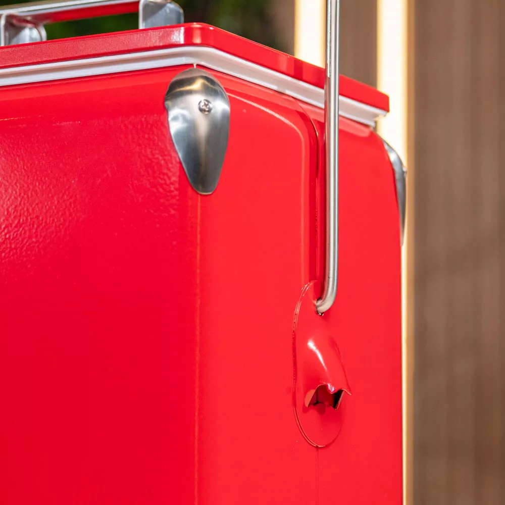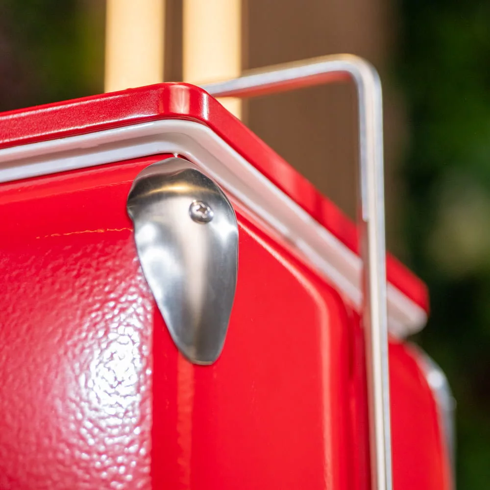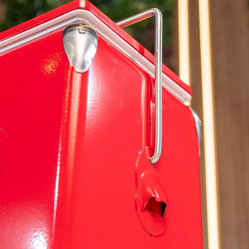 Unikalny design w stylu retro w połączeniu z solidną stalową konstrukcją sprawia, że produkt ten jest niezbędnym akcesorium na każdą wycieczkę. Lodówka łączy w sobie niezawodność i styl. Idealny w podróży i na kempingu. Wykonana ze stali i w efektownym czerwonym kolorze dzięki technologii malowania proszkowego. To nie tylko stylowe akcesorium , ale także trwałe rozwiązanie, które spełnia potrzeby podróżników.
