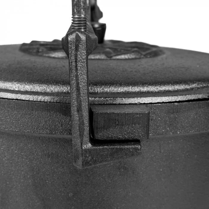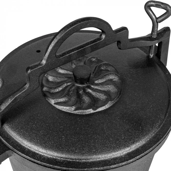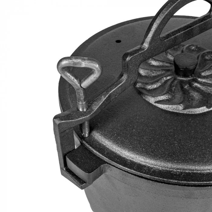 Żeliwny garnek został wyposażony w pokrywkę, która zapewnia łatwe przygotowywanie potraw i utrzymanie odpowiedniej temperatury. Pokrywka nie tylko chroni przed utratą ciepła, ale także zapobiega rozlewaniu się tłuszczu, dzięki czemu gotowanie jest czystsze i wygodniejsze.