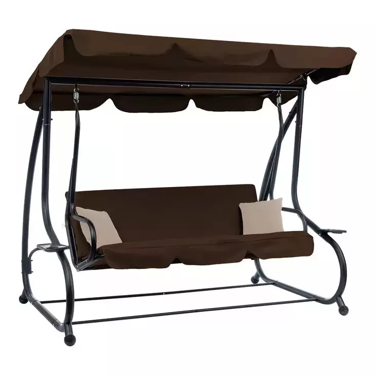 3-osobowa huśtawka ogrodowa pozwala na relaks z najbliższymi w ogrodzie lub na tarasie. Wyposażona jest w regulowaną markizę, która skutecznie chroni przed promieniami słonecznymi. Można ją optymalnie dostosować do potrzeb użytkownika. Dzięki zastosowanej w konstrukcji funkcji składania siedziska, huśtawka pozwala na relaks w dowolnej pozycji. Stalowa konstrukcja zapewnia stabilność i trwałość całego mebla. Dach, siedzisko i poduszki wykonano z poliestru, który jest bardziej odporny na wilgoć, dzięki czemu doskonale nadaje się do użytku na zewnątrz.