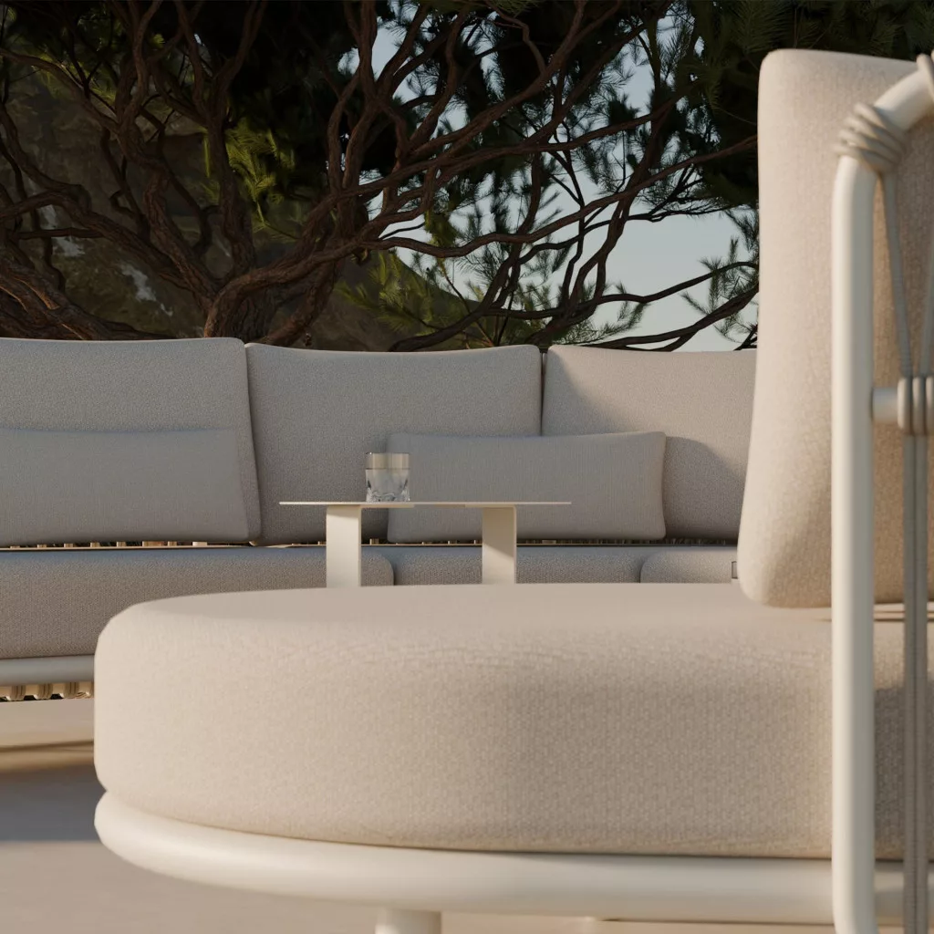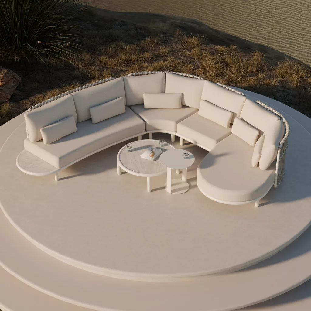 Mniejsza, sześcioelementowa wersja kolekcji Es Vedra została zaprojektowana z myślą o przestrzeniach wymagających maksymalnej funkcjonalności bez poświęcania estetyki. Moduły można dowolnie łączyć, tworząc wygodną sofę, narożnik lub niezależne siedziska. Taki układ pozwala dopasować meble do wielkości tarasu, ogrodu czy werandy, zachowując przy tym spójność i elegancję, które charakteryzują projekty Macieja Zienia.